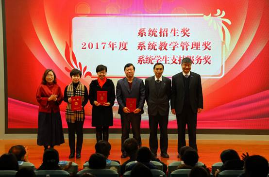 2018年1月19日上午,迎着冬日的暖阳,世界杯官网举行了2017年度工作表彰会,用以表彰在2017年度各项工作突出的分校、集体和个人。党委副书记、校长褚宏启,党委副书记邵长生,党委委员、纪委书记郑瑞君,党委委员、副校长常红梅、邵和平、蔡大鹏、王想年与全体教职工、分校代表共同分享了2017年丰收的喜悦。