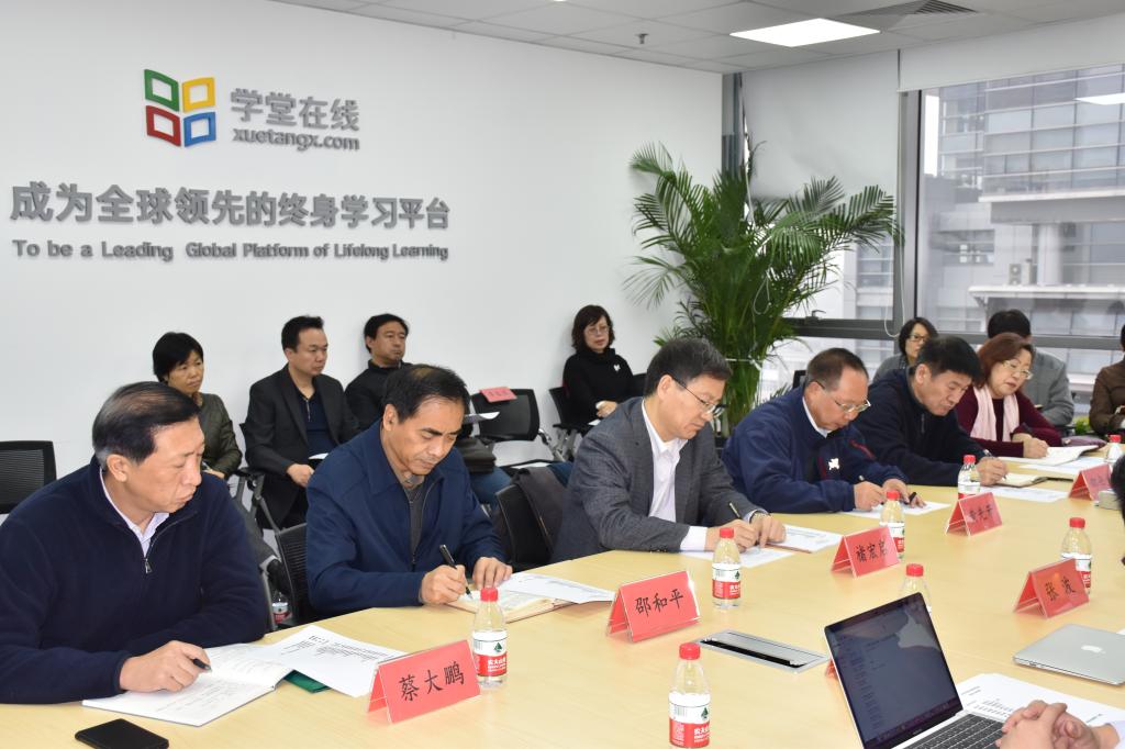 11月14日上午,校党委书记黄先开带队,校党委理论学习中心组(扩大)一行到清华控股成员企业慕华教育旗下学堂在线调研学习。