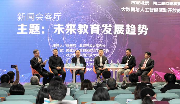 褚宏启校长主持题为“未来教育发展趋势”的新闻会客厅,首都师范大学副校长周建设教授、云南开放大学校长杜俊军、上海开放大学副校长王宏研究员、哈佛大学李太豪研究员、中文在线教育科技发展有限公司副总经理李林等嘉宾,围绕未来教育发展趋势,新技术支持下教育的模式变革和生态重构、新技术在教育教学中的应用、未来智能教育将面临的新机遇和新挑战等展开深入研讨。