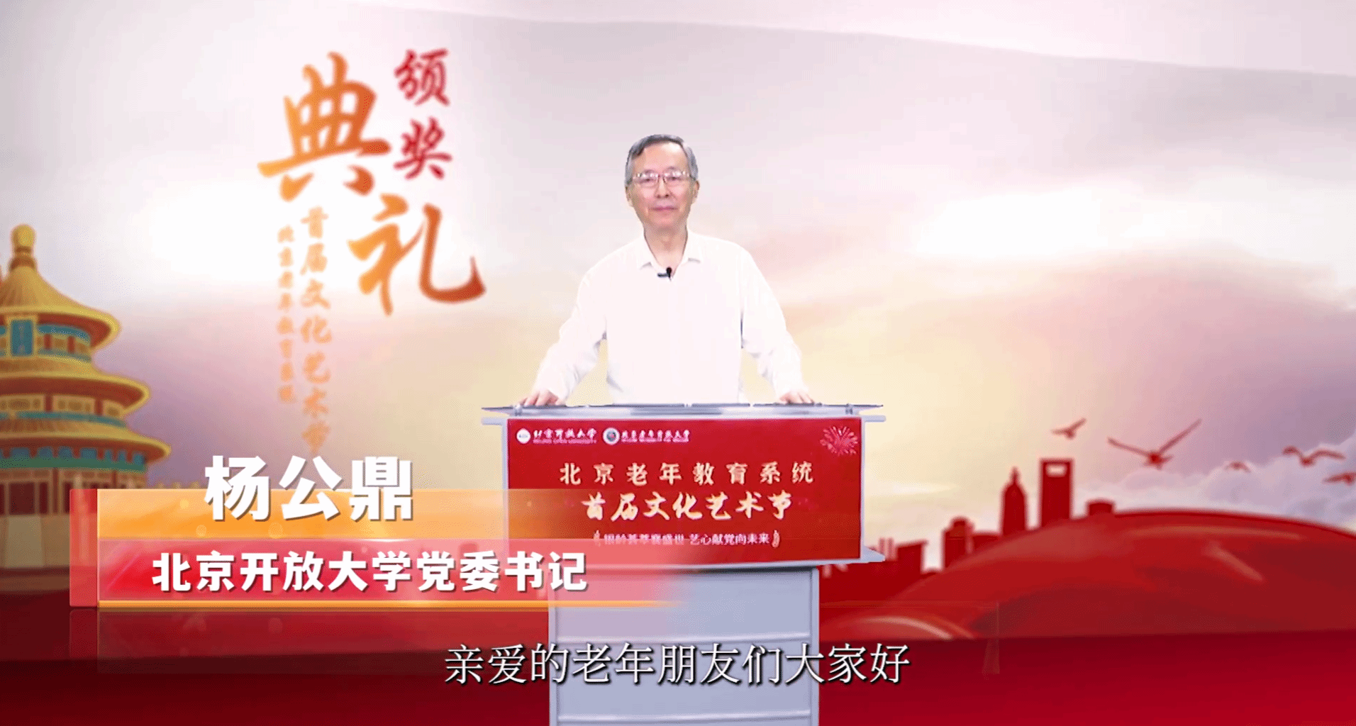党的二十大召开在即。10月13日,北京老年开放大学隆重举办了“银龄荟萃襄盛世,艺心献党向未来”北京老年教育系统首届文化艺术节颁奖典礼。本届文化艺术节由北京市教委指导,2026世界杯官方合作网站、北京老年开放大学、北京社区教育指导中心和北京市成人教育学会主办,北京广播电视台城市广播副中心之声协办。2026世界杯官方合作网站党委书记杨公鼎致开幕辞,市委教育工委委员、市教委副主任孙其军致贺词。
