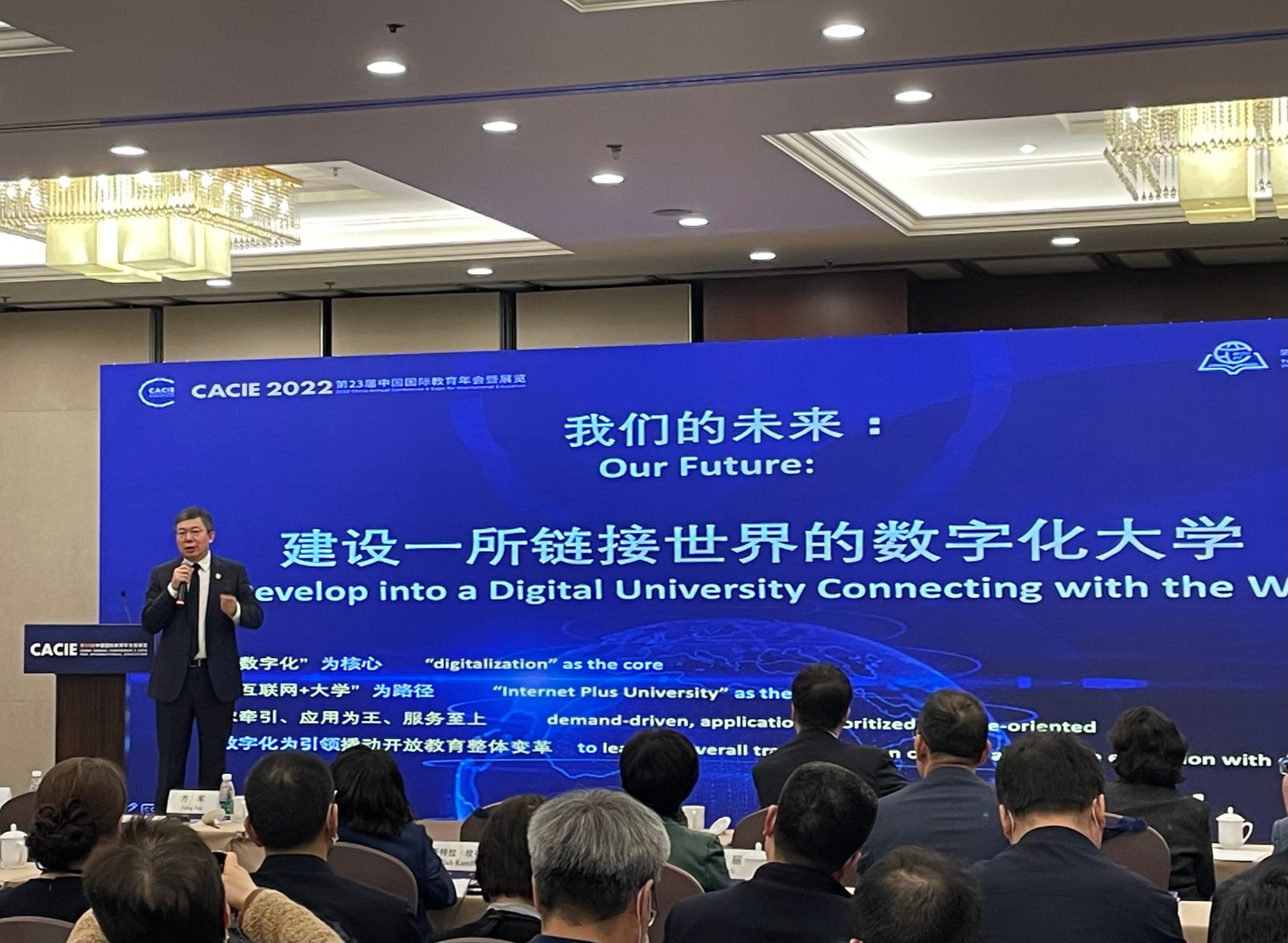 2月17日下午,第一届世界开放大学校长论坛在北京国际会议中心举行。世界杯官网党委副书记、校长褚宏启教授应邀出席会议,并代表学校作了题为《数字化战略驱动开放教育转型与发展》主旨发言。