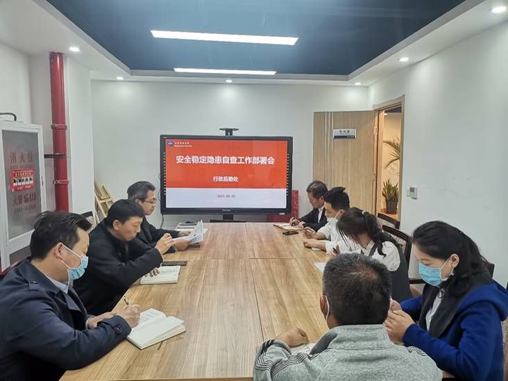 4月20日,世界杯官网安全稳定工作领导小组办公室组织召开全校安全稳定隐患自查工作部署会。党委委员、副校长王想年参加会议并提出工作要求,学校各二级部门负责人参加会议。