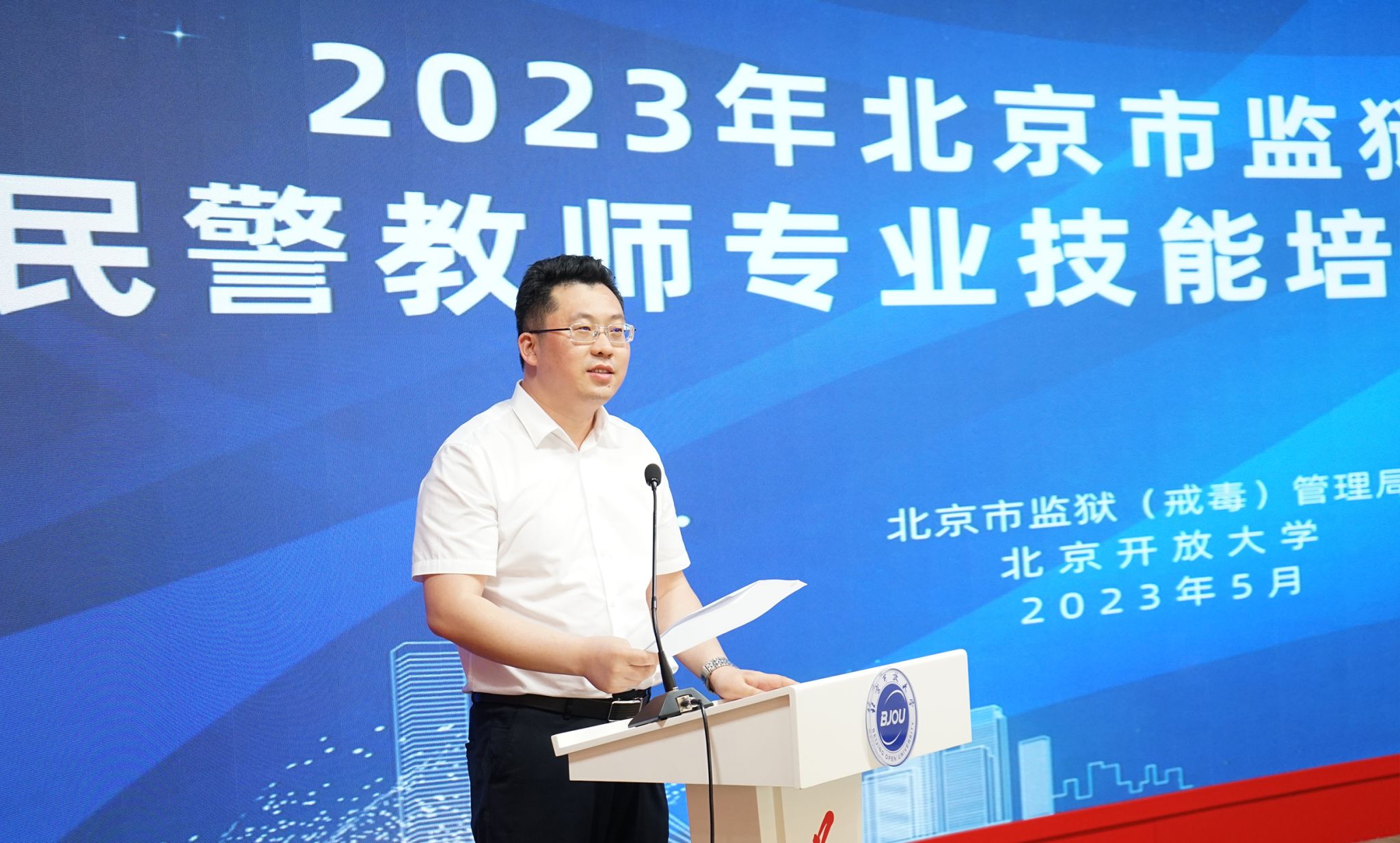 5月22日上午,2023年北京市监狱(戒毒)管理局民警教师专业技能培训在世界杯官网举行开班仪式。学校党委书记方中雄、北京市监狱(戒毒)管理局副局长张彬、教育改造处处长尉迟玉庆等出席开班仪式。