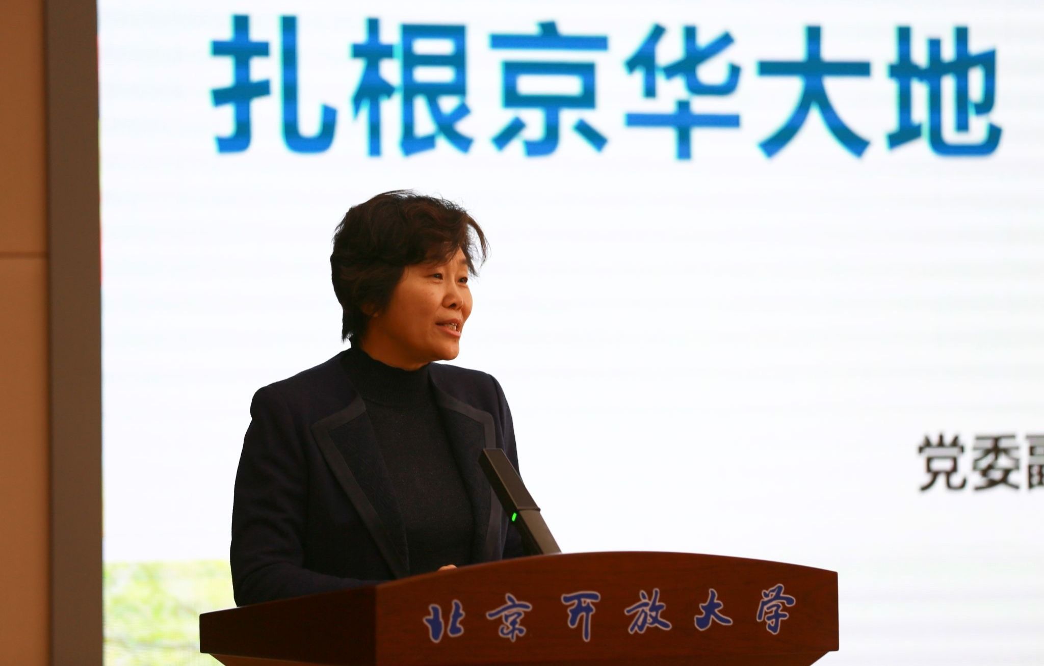 党委副书记、校长许晓革向大会作汇报。许晓革以“扎根京华大地 办好高质量开放教育”为题,从学校基本情况、办学成效与特色、下一步努力方向等三个方面向专家组做了汇报。她表示,北京分部高度重视本次办学评估工作,认真贯彻“促规范、促建设、促改革、创特色”的评估原则,全面总结办学经验、凝练办学特色、深化教学改革,以迎评工作推动办学质量再上新台阶。下一步,学校将深入学习贯彻党的二十大和北京市第十三次党代会精神,充分发挥开放教育办学优势,大力推进人才培养模式改革,为建设“人人皆学、处处能学、时时可学”的学习型城市,实现首都教育现代化做出新的更大贡献。