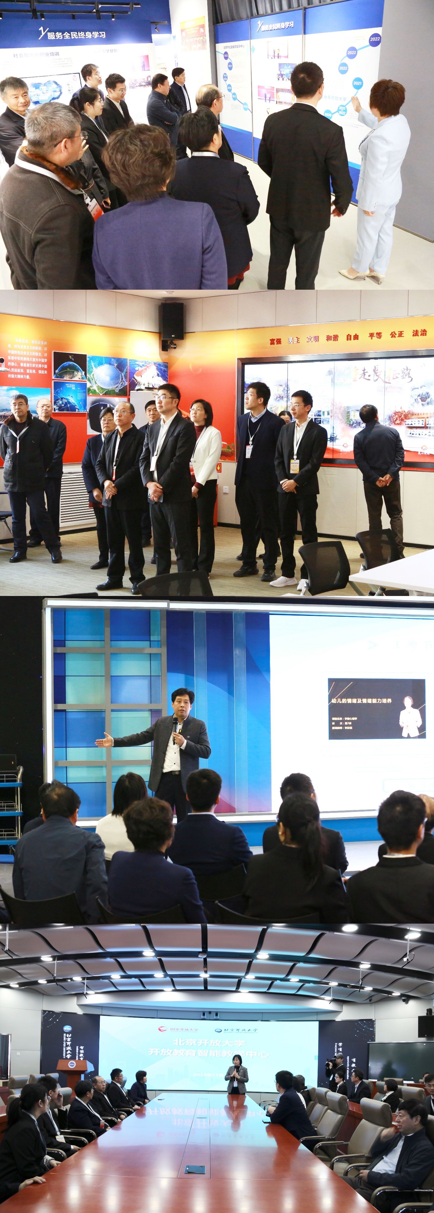 会后,专家组一行参观了校园环境和文化设施,实地考察了学校办学历程展、思想政治教育教学实践中心、数字资源中心演播室、开放教育智能教学中心等教育教学功能场所。