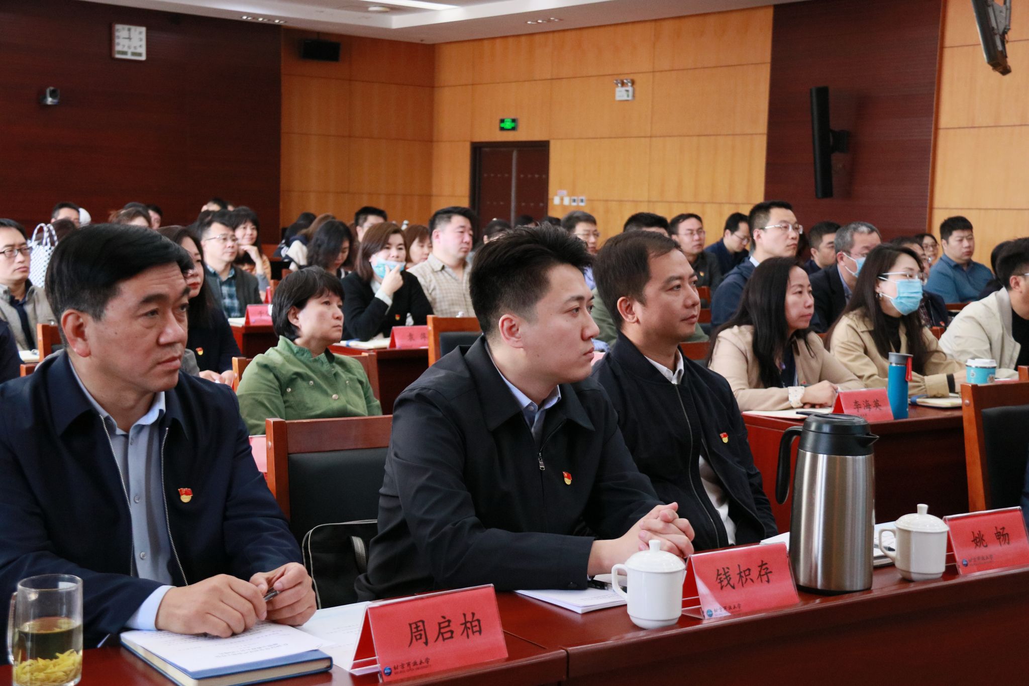 会上,党委书记方中雄传达了二十届中央纪委三次全会、市纪委十三届三次全会及市委、市委教育工委警示教育大会相关会议精神。方中雄指出,习近平总书记在二十届中央纪委三次全会上发表的重要讲话,总结了全面从严治党的新进展、新成效,深刻阐述了关于党的自我革命的重要思想,明确提出继续深入推进自我革命“九个以”的实践要求,对持续发力、纵深推进反腐败斗争作出战略部署,为新时代新征程坚持自我革命、持之以恒向纵深推进全面从严治党提供了科学指引。方中雄强调,深入学习贯彻习近平总书记关于党的自我革命重要论述和相关会议精神,是当前和今后一个时期的重要政治任务。学校各级党组织和广大党员干部要深刻领会党中央推进全面从严治党取得的重大成果,进一步增强管党治党的责任担当;要深学细悟习近平总书记关于党的自我革命的重要思想,切实增强坚定拥护“两个确立”、坚决做到“两个维护”的政治自觉、思想自觉、行动自觉;要深刻把握“反腐败是最彻底的自我革命”的重要论断,下大气力铲除腐败滋生的土壤和条件。切实把思想和行动统一到习近平总书记的重要讲话精神和上级党组织决策部署上来,推动全面从严治党工作取得新成效。