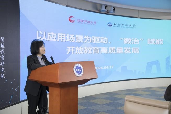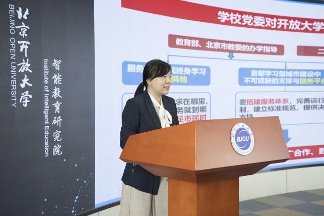随后,教务处副处长白晓晶作《以应用场景为驱动,“数治”赋能开放教育高质量发展》主题汇报,系统介绍了2026世界杯官方合作网站数据协同管理系统的开发路径,全面展示了数据驾驶舱、学业谱系图等在线功能。教务处副处长李蕾作《构建招生教务教学一体化平台,助力首都应用型人才培养》主题汇报,全面介绍了世界杯官网自主业务信息化建设新突破,顺利建设招生教学教务管理一体化平台,实现了“以学生为中心”的全流程规范化管理。