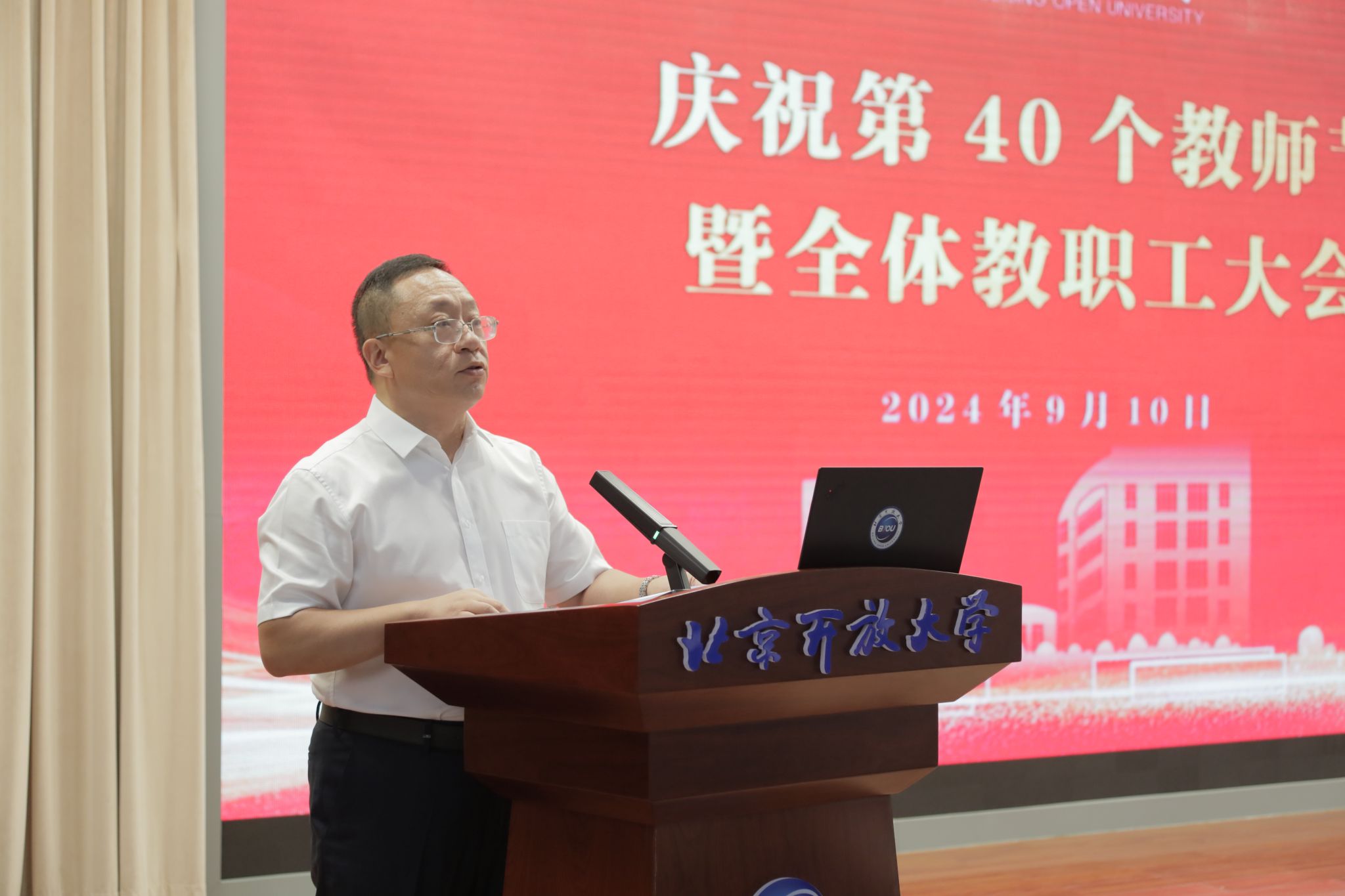 师德故事分享环节后,学校举行了庆祝第40个教师节表彰大会,表彰了获得市级各类奖励的先进集体和个人,以及从事教育工作满30年的教职员工举行了颁奖仪式。