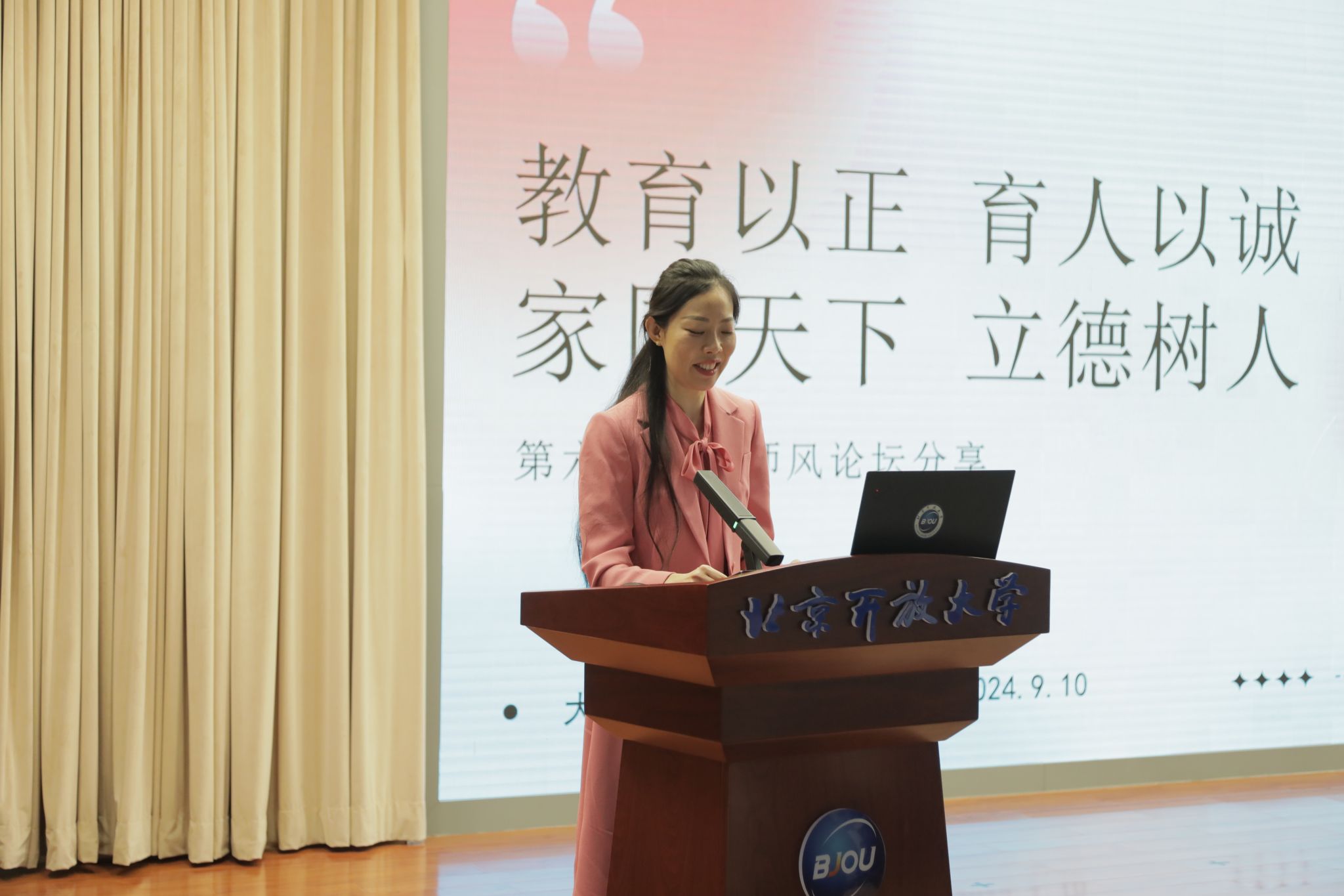 本次师德师风主题论坛邀请了人文与教育学院教师贾红霞、城市管理学院教师王小兰、商学院教师刘怡娟、科学技术学院教师袁捷、石景山分校教师郝晓燕、大兴分校教师田梦,分别交流分享了对教育家精神的理解与感悟,以及在教学岗位上坚守师德初心的感人故事,全面展示了新时代开放教育系统高素质专业化教师队伍建设的突出成就和广大教师立德树人、自信自强的精神风貌。