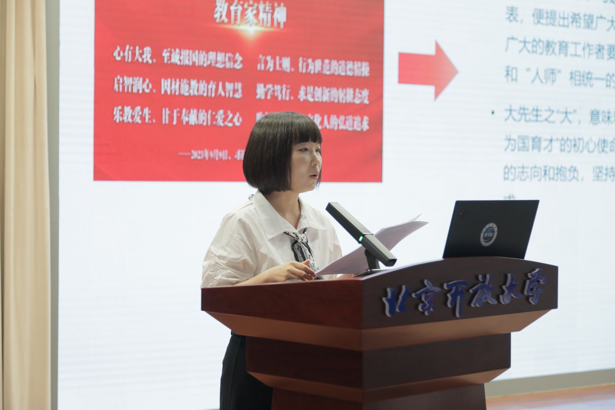 9月10日,世界杯官网举办了“大力弘扬教育家精神 加快建设教育强国”第六届师德师风主题论坛。学校领导班子、全体教职工和部分办学体系教师参加会议。论坛由党委副书记殷文生主持。