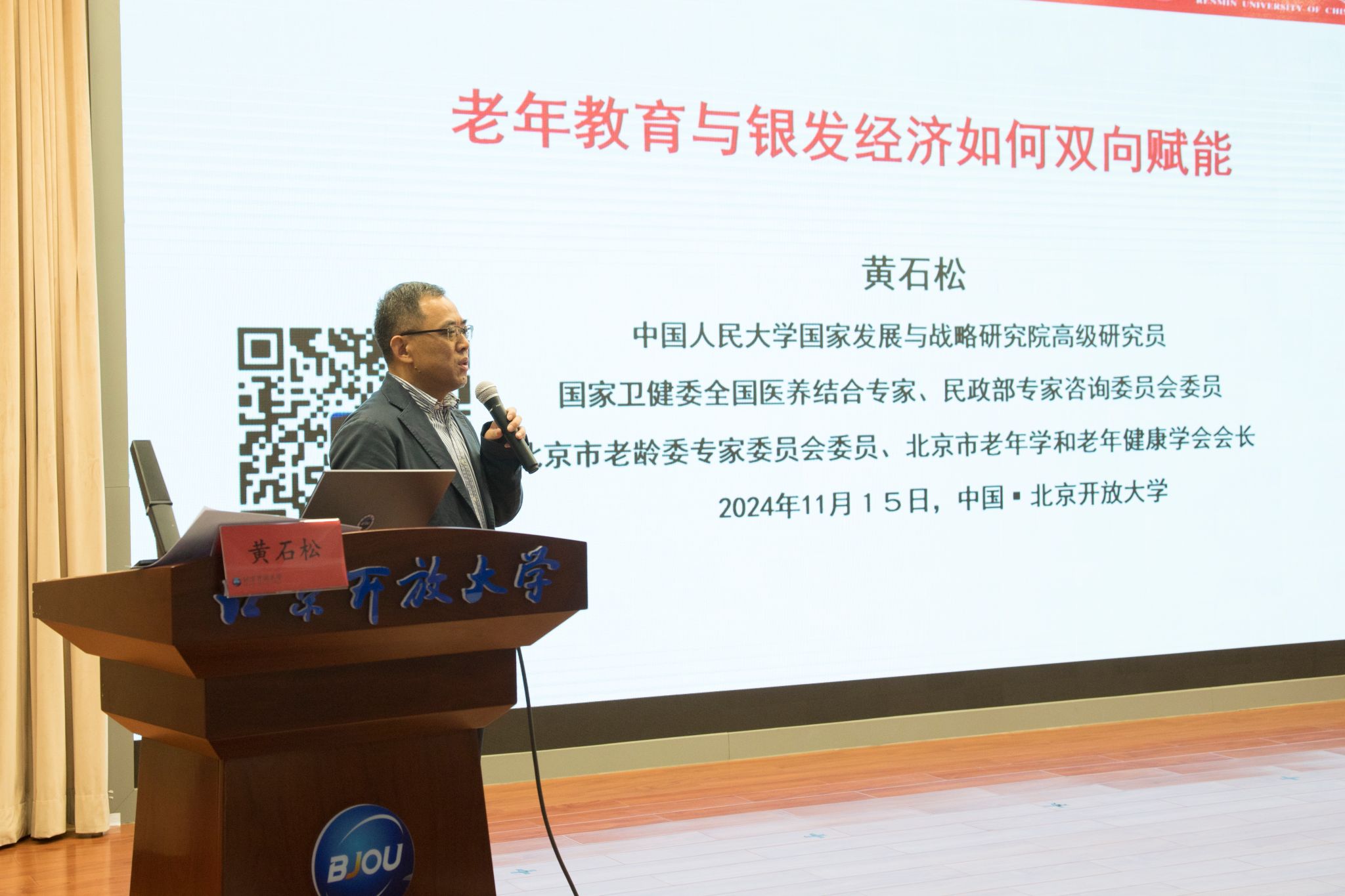 黄石松教授深入辨析教育和学习、终身教育和终身学习、老年教育和老年学习等相关概念,提出老年教育的实质是健康促进和功能维护,主要表现形式是“社交+娱乐”,分享了老年教育与银发经济一体两面、相互赋能的独特思考。