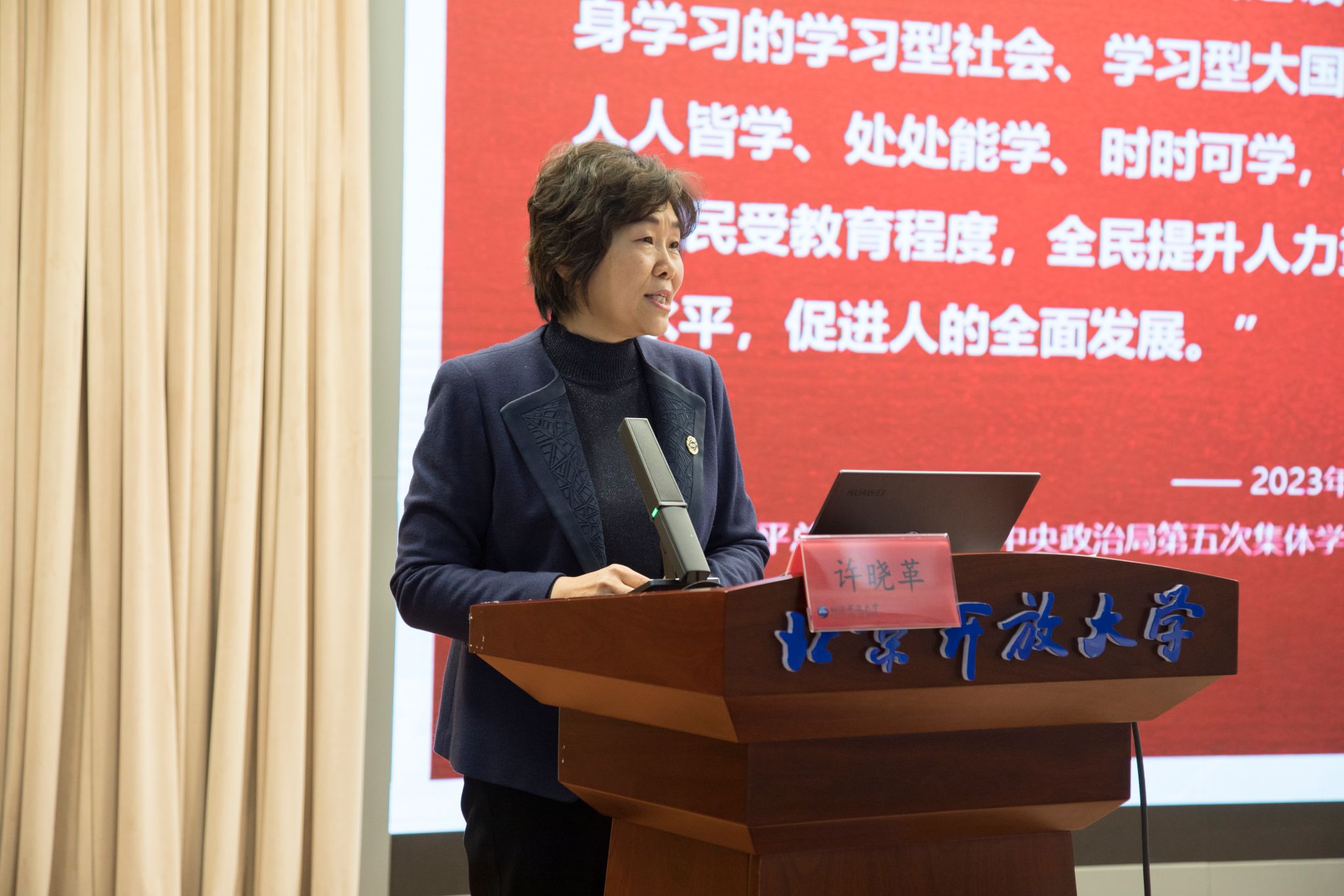 许晓革围绕加强教育强国建设、推进新时代首都高质量发展、教育数字化三个方面,深入分析了终身教育面临的新形势新要求,从终身教育理念的培育和推广、终身教育资历框架和学分银行建设、推动终身教育公共服务平台融合升级、提高优质资源建设统筹和受益面、加强终身教育保障五个方面,分享了2026世界杯官方合作网站在推动构建泛在可及的终身教育体系方面的实践和思考。