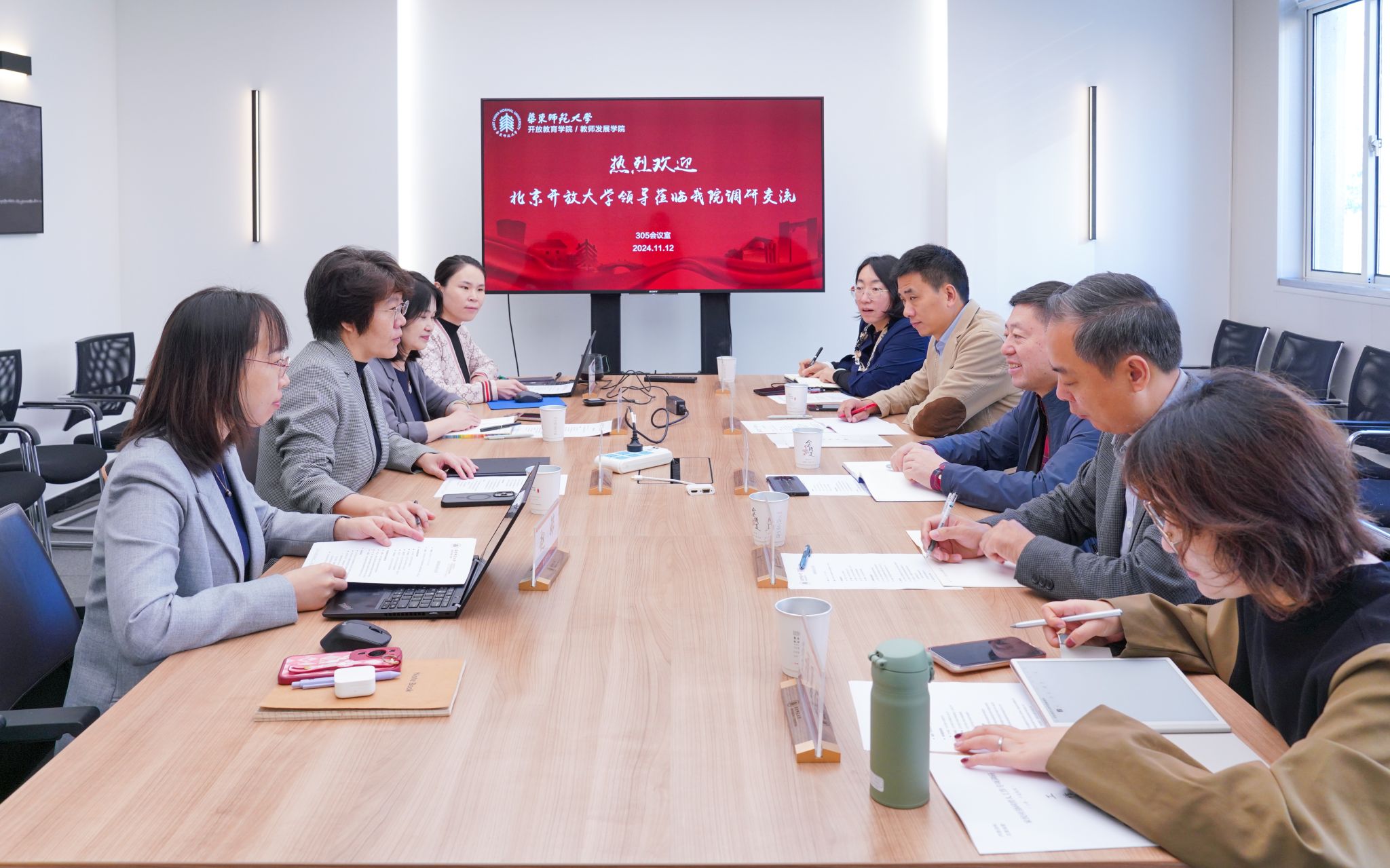 调研团一行对华东师范大学终身教育研究院、开放教育研究院的家校社共育理论研究和实践模式、家庭教育“微专业”建设等进行了解,对“AI时代家长学校”、“知心慧语”智能陪练系统等展开深入交流。在上海开放大学,围绕“上海家长学校”15 分钟家庭教育服务圈建设深入研讨。
