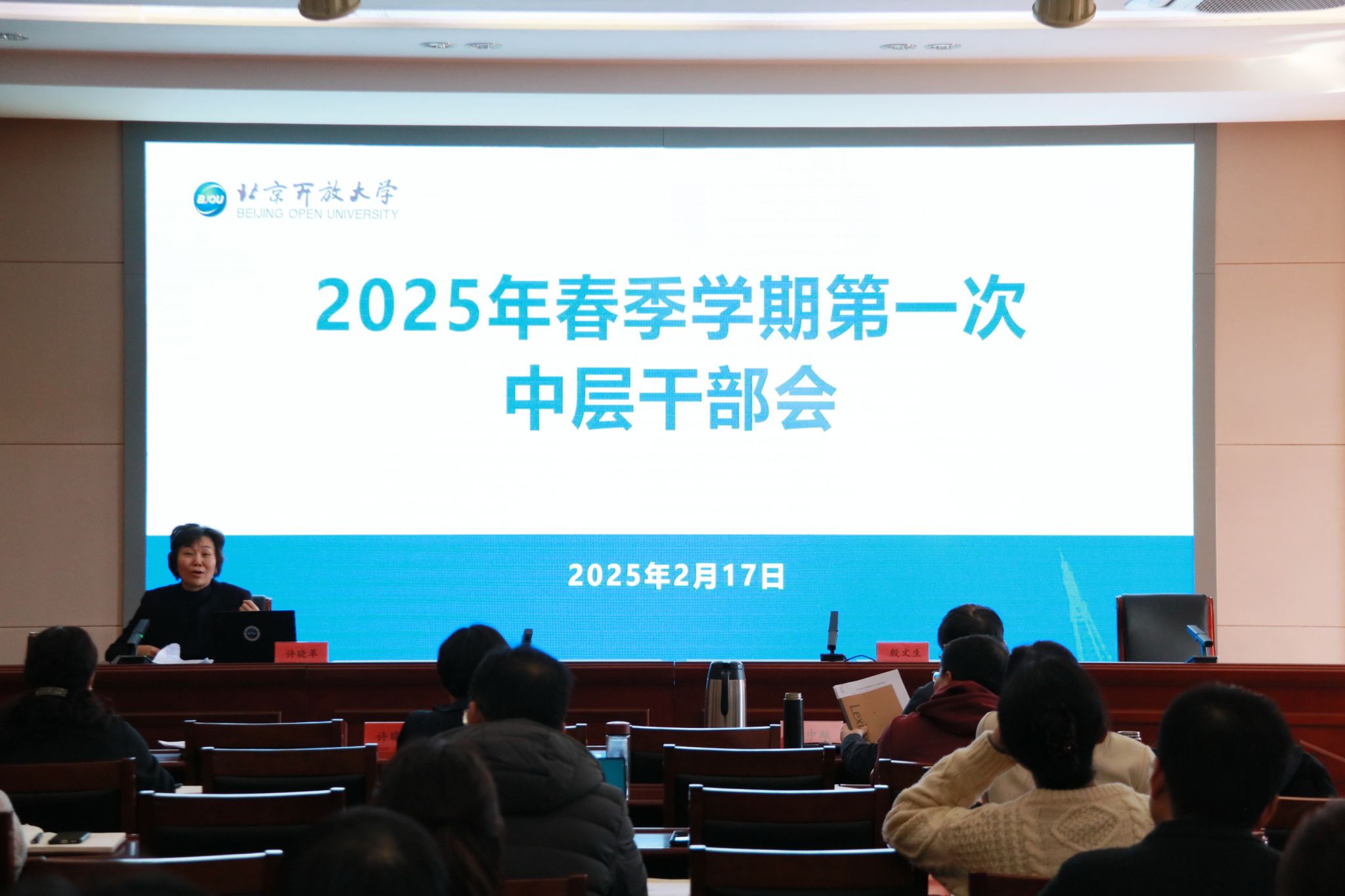 为服务构建泛在可及的终身教育体系,加快推进学校转型升级,2月17日下午,学校召开春季学期第一次中层干部会,全体校领导、中层干部参加会议。会议由党委副书记殷文生主持。