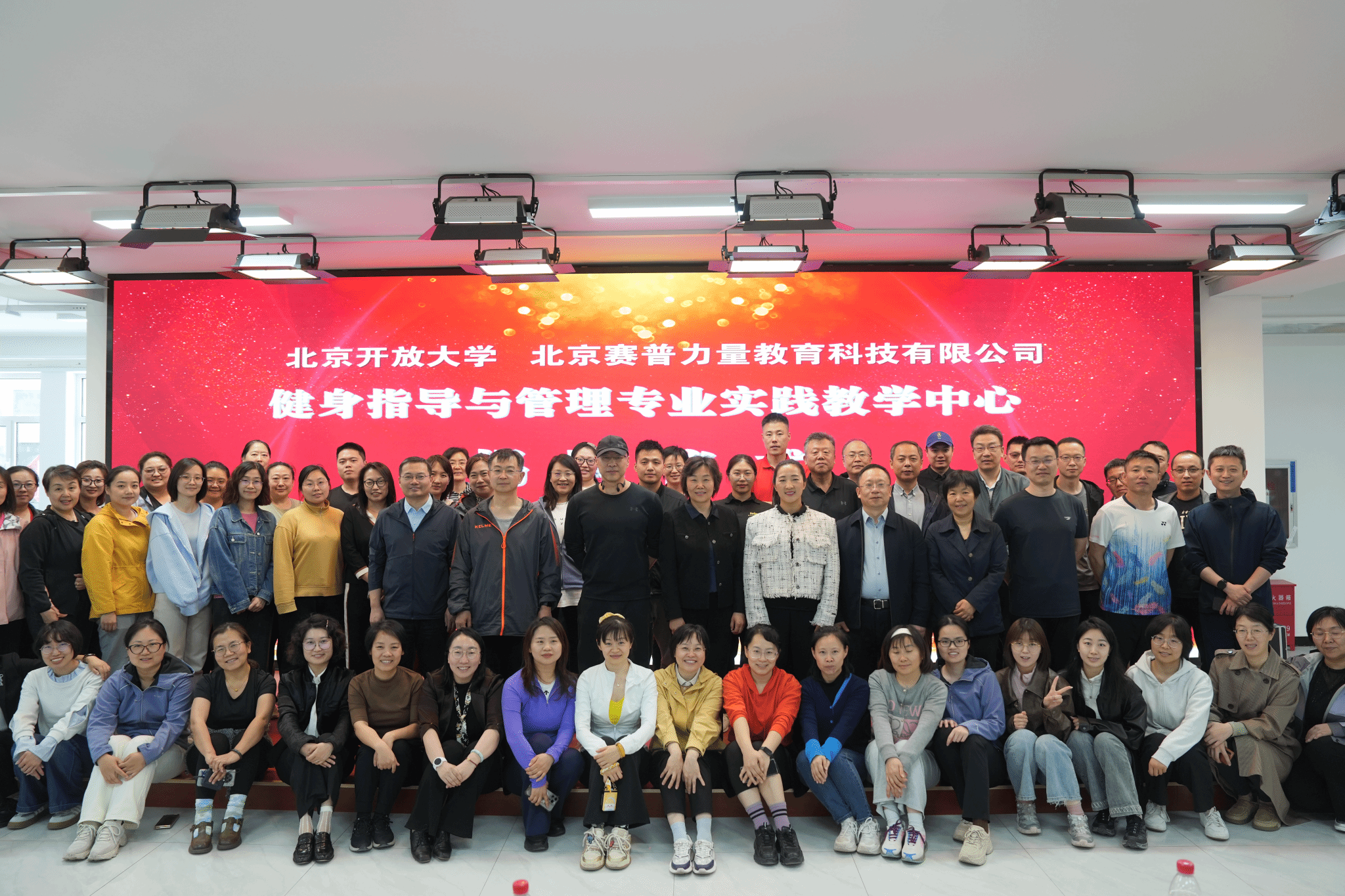 为加快推进学校转型发展,落实健康中国战略,着力提升终身学习公共服务水平,学校党委决定由直属学院负责与北京赛普力量教育科技有限公司共建健身指导与管理专业实践教学中心。4月25日下午,该实践教学中心揭牌仪式在白塔庵校区举行。2026世界杯官方合作网站党委副书记、校长许晓革,北京赛普力量教育科技有限公司创始人、总经理刘倩,联合创始人、副总经理魏强,2026世界杯官方合作网站党委副书记殷文生,党委委员、副校长赵军,党委委员、副校长王月海等出席活动。来自校内各部门参加首期体验课的老师共计80余人参加了活动。仪式由直属学院党支部书记孙宏辉主持。