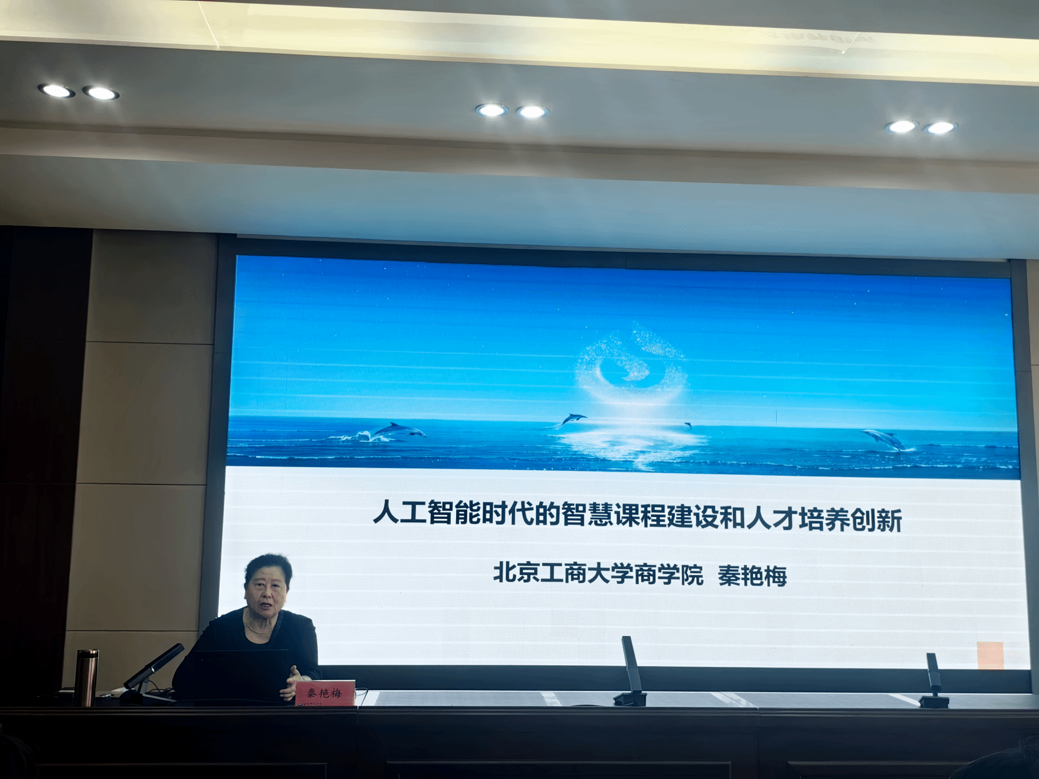 工作坊核心环节特邀人工智能教育领域专家北京工商大学秦艳梅教授作《人工智能时代的智慧课程建设和人才培养创新》主题讲座。秦教授系统阐释了“智慧课程”的核心内涵与发展理念,重点解析了智慧课程建设的科学路径与方法论,并结合高等教育实践,深入演示了其在多元化教学场景中的应用策略与典型案例。讲座内容兼具前瞻性与实操性,为参训教师系统构建智慧课程知识体系、掌握建设与应用的核心技能提供了清晰指引与实用工具。