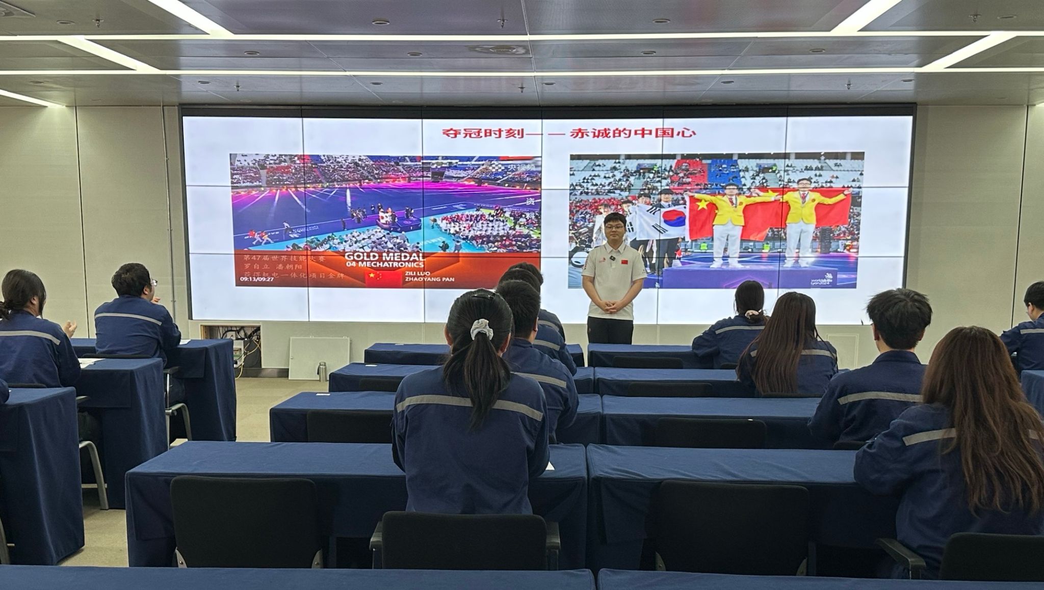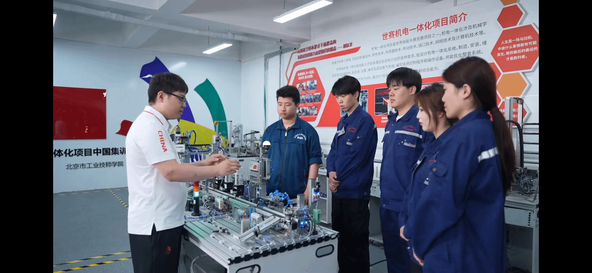 课程第三部分由罗自立老师讲授。罗自立为同学们讲述了自己通过刻苦训练勇攀技能巅峰,为国争光的动人故事。随后,罗自立带领全体师生走进“世界技能大赛机电一体化项目中国集训基地”进行实地参观。并带领大家亲自体验高效、精准的药瓶装配与质量检测智能生产线,直观感受技能成才、技能报国的广阔舞台,深刻体悟“用工匠精神点亮人生,用美好劳动创造未来”的新时代青年风尚。