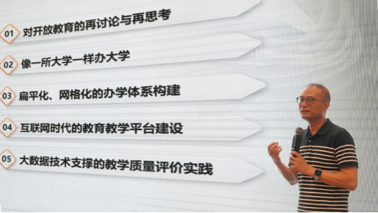 和江苏开放大学的深度交流成为此次培训的亮点。江苏开放大学教务处朱袆处长以《数智赋能,体系协同:奋力推进开放教育高质量发展》为题,分享江苏开放大学在数智时代推进开放教育高质量发展的转型思路与改革实践,为世界杯官网教育教学工作提供可参考借鉴的经验样本。江苏开放大学社会教育处、信息工程学院相关负责人及教师代表,与参训学员围绕“数智时代开放教育的挑战与机遇”展开深度对话,进一步促进思想碰撞与经验互鉴。