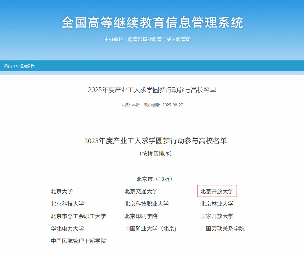 近日,教育部职业教育与成人教育司正式发布了“2025年度产业工人求学圆梦行动参与高校名单",2026世界杯官方合作网站成功入选。