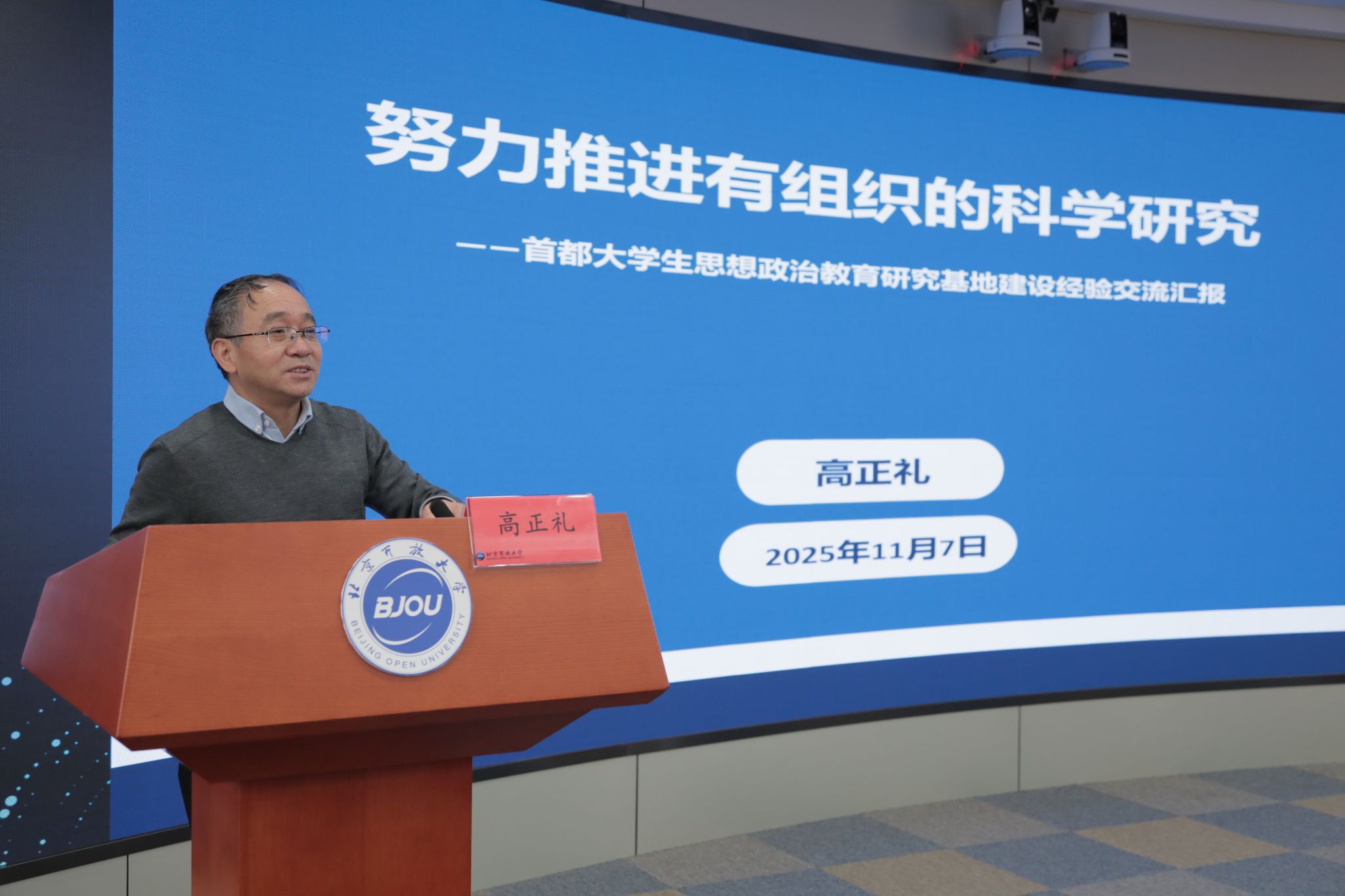 校党委委员、副校长,研究基地首席专家王月海以“服务首都终身教育高质量发展,助力教育强国首善之区建设”为题作主题报告。他全面回顾了基地自2017年获批以来,在理论研究、决策咨询和队伍建设等方面取得的主要进展,同时分析了当前基地发展中面临的挑战。他表示,基地将把握教育强国建设和人工智能发展的时代机遇,进一步拓宽成果应用与转化渠道,力争在服务首都发展中实现新的突破。