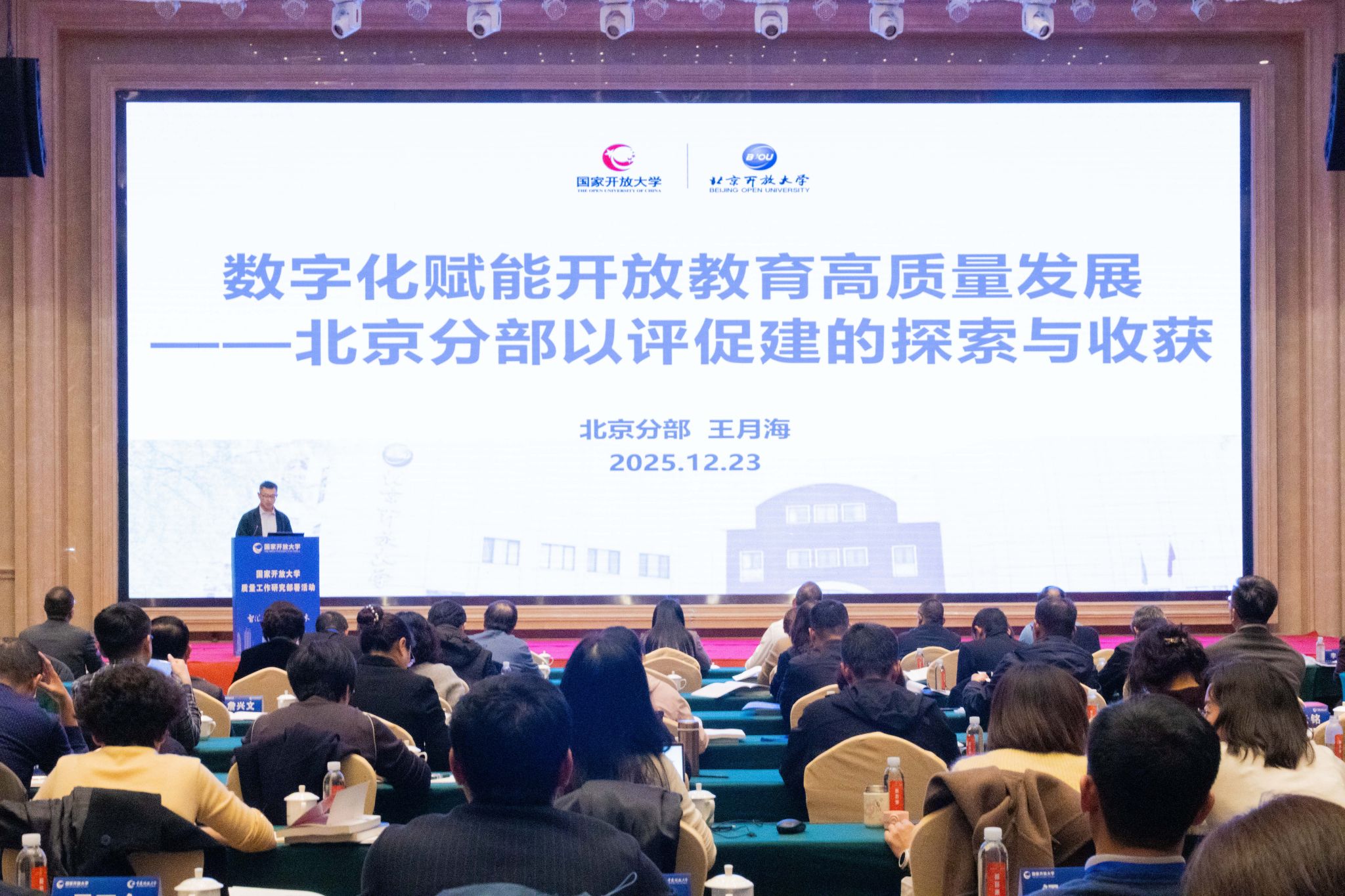 国家开放大学党委委员、副校长李松出席活动,教育部职成司高等继续教育处副处长徐璐、教育质量评估中心副主任张勇作工作指导。本次活动以推动开放大学体系高质量发展为主题,深入学习贯彻党的二十届四中全会和全国教育大会精神,落实《教育强国建设规划纲要(2024—2035年)》和三年行动计划,围绕“总结首轮分部办学评估成效、部署第二轮评估工作、交流以评促建经验”等内容,紧扣开放教育质量建设核心议题,旨在以监测评价为牵引,驱动开放教育办学体系提质增效,统筹谋划国家开放大学未来五年质量工作。