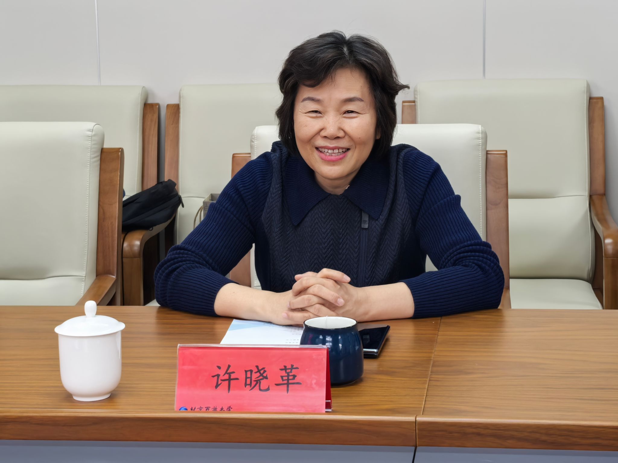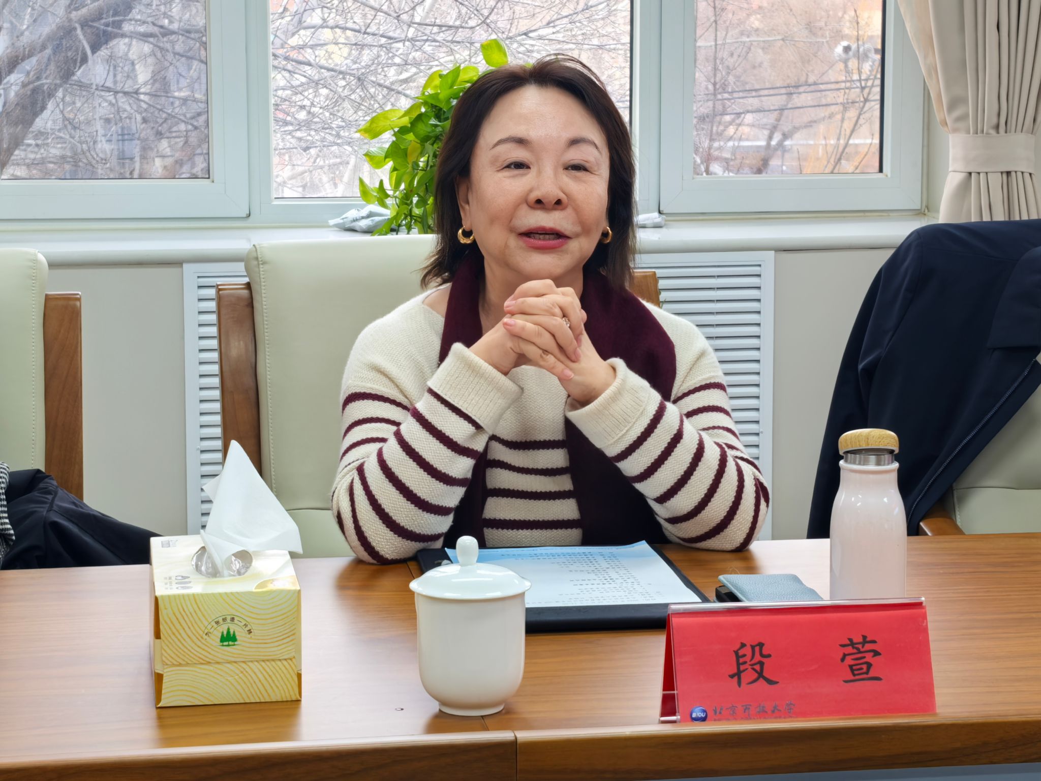 许晓革对段萱一行的到访表示热烈欢迎。她详细介绍了学校办学定位、特色与优势,以及学校主动融入新时代首都发展大局,统筹推进学历教育与非学历教育,持续加强老年教育的探索与实践。 她表示,此次交流有助于双方推动战略合作走深走实,进一步深化产教融合、拓展合作路径,为服务首都高质量发展、落实积极应对人口老龄化国家战略凝聚合力。