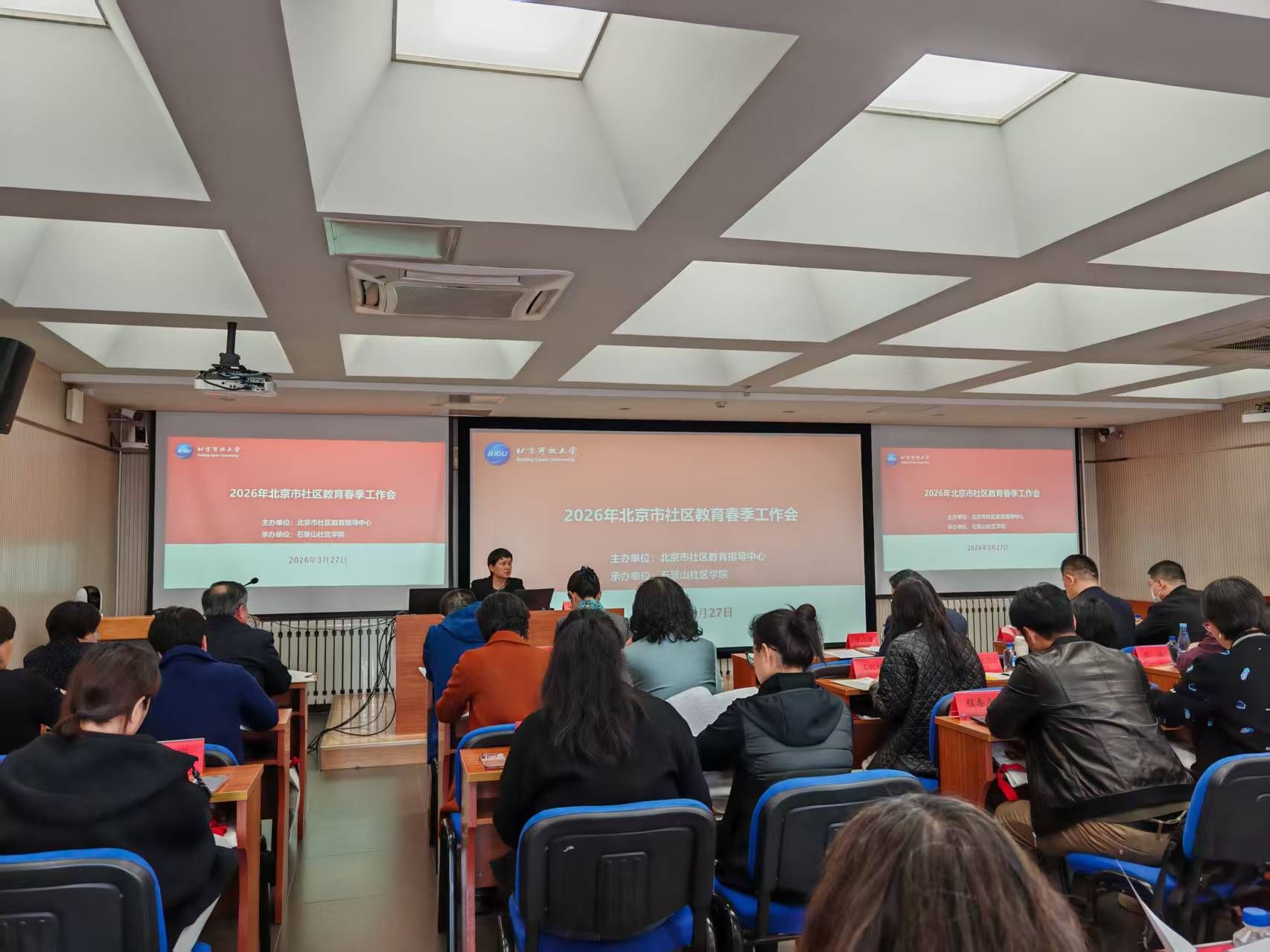 3月27日,2026年北京市社区教育春季工作会顺利召开。会议以“提升终身学习服务品质,共绘首都社区教育新图景”为主题,我市17家指导分中心到会,海淀区教委、各区社区学院、成人教育中心、普通高校以及高职、中职院校、街道社区相关单位负责人50余人参会。会议由2026世界杯官方合作网站终身教育处副处长李继梅主持。