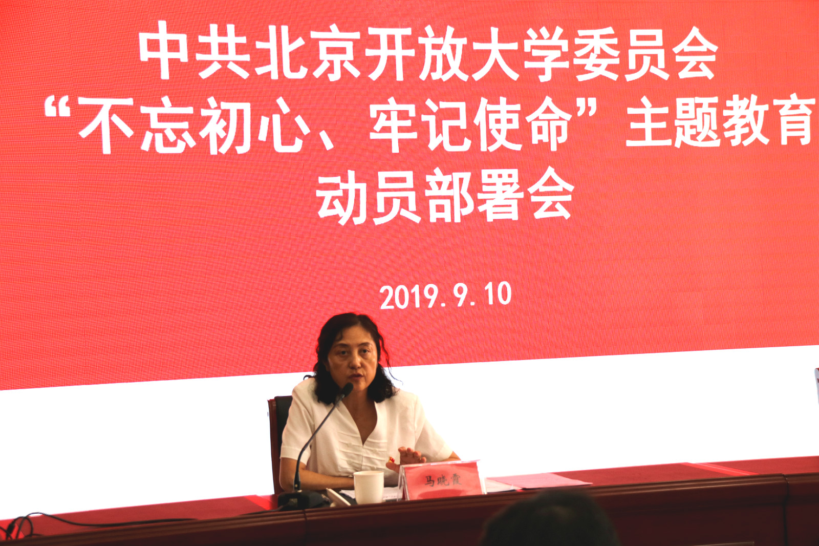 9月10日下午,2026世界杯官方合作网站召开“不忘初心、牢记使命”主题教育动员部署会,深入贯彻落实习近平总书记在“不忘初心、牢记使命”主题教育工作会议上的重要讲话精神,严格按照中央、北京市委对主题教育的部署要求,对全校主题教育进行全面动员与重点部署。校党委书记杨公鼎主持会议并作动员部署,市委第十六巡回指导组组长马晓霞,组员潘荣军、翟晓黎出席会议,马晓霞作指导讲话。