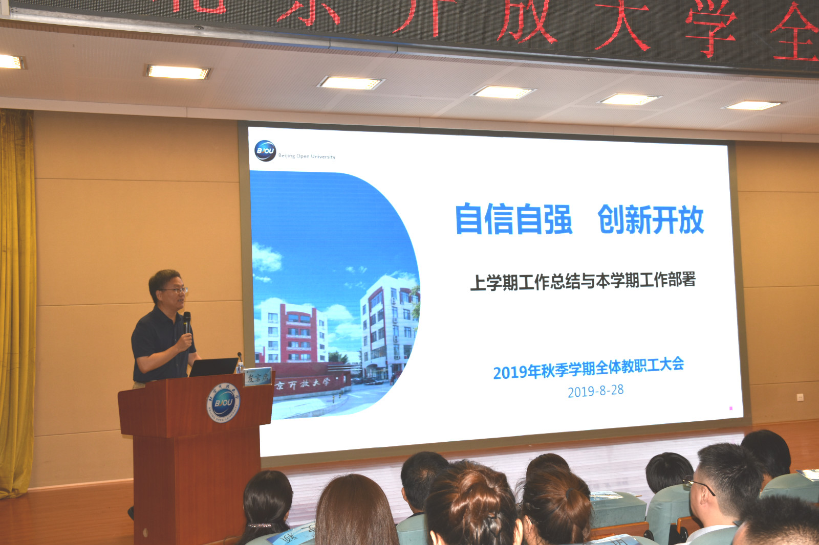党委副书记、校长褚宏启以“自信自强、创新开放”为题做了讲话。褚校长在总结上学期重点工作时认为,在校党委的坚强领导和全体教职工努力下,世界杯官网党的建设更加专业化、人事制度更加人性化、学校定位更加明确、专业和课程建设不断加强、积极推进学分银行试点、非学历教育进一步加强、系统项目整合初见成效、学术影响力不断扩大、系统凝聚力显著提升、对上对外沟通成效良好、管理效能不断提升。