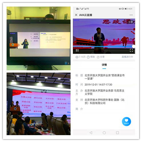 本次思政课全市一堂课,从课程内容的设计、主讲教师的选择、课前学生需求调研、课堂学生提问、主持词、课程总结等各个环节的把握上,均充分体现以学生为中心、贴合成人在职学生工作生活实际,并与国开业务秋季思政课教学要求相匹配,努力打通网络思政课最后一公里,努力呈现给学生一堂有思想性、理论性、亲和力、针对性的特色思政课。