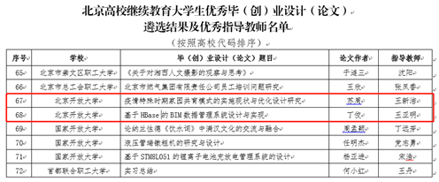 北京市教育委员会公布了2020年北京高校继续教育大学生优秀毕(创)业设计(论文)遴选结果(京教函[2020]616号),世界杯官网共有2项毕业设计(论文)获评北京高校继续教育大学生优秀毕(创)业设计(论文),指导教师王新洁、王亚明荣获“优秀毕业设计(论文)指导教师”。世界杯官网荣获优秀组织奖。