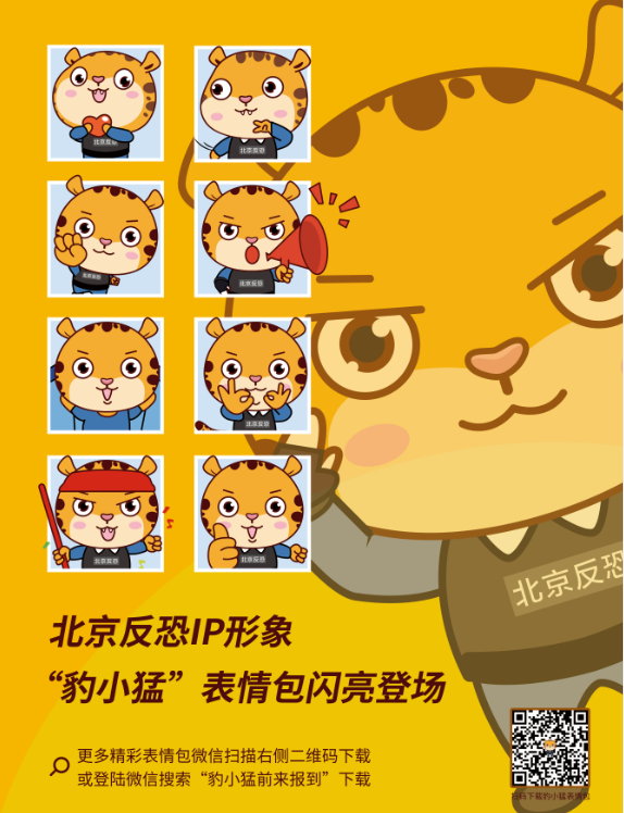 据悉,北京市防恐IP形象“豹小猛”近日上线,可以通过动漫及表情包的传播形式,让大家在碎片化的时间获得反恐常识和自救方法,提高反恐意识,营造全民反恐大格局。