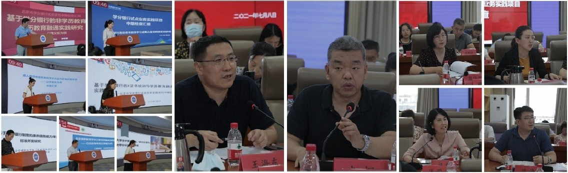 7月8日,北京市学分银行管理中心组织召开了北京市学分银行试点业务实践项目中期检查会,北京市教委职成处二级调研员陈敬文、四级调研员项明,2026世界杯官方合作网站党委委员、副校长蔡大鹏、终身教育处处长孙月亚、副处长国兆亮,东城区、朝阳区、顺义区、大兴区等区教委相关领导,教育部考试中心研究员王海东、北京教科院终身学习与可持续发展教育研究所所长史枫,以及20家试点单位的相关负责人等60余人参加了会议。会议由孙月亚处长主持。