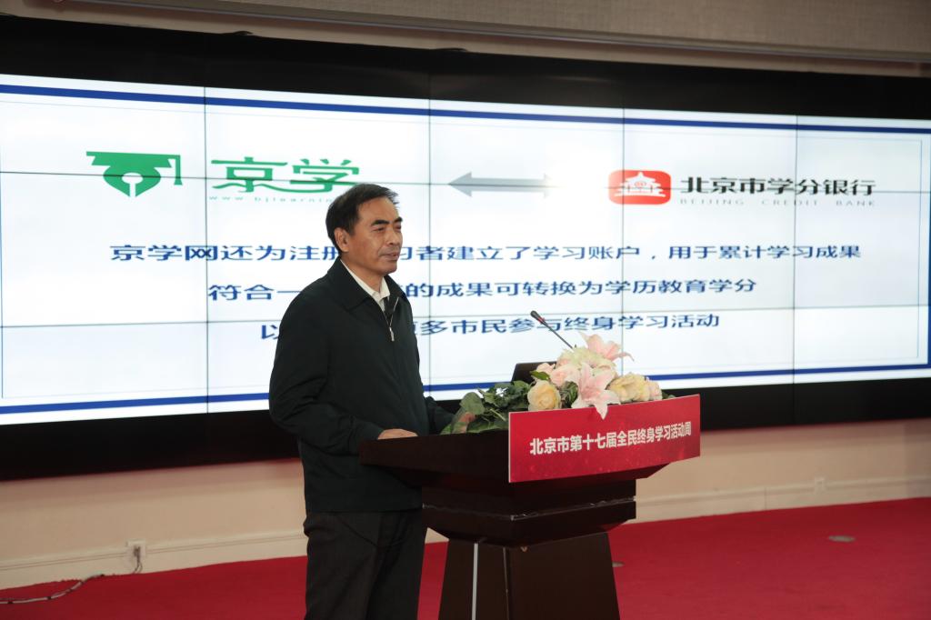 北京市第十七届全民终身学习活动周开幕式于12月9日采用“主会场+分会场”、线上线下相结合的形式举行。开幕式上,校党委委员、副校长邵和平宣布新版“京学网”上线发布。
