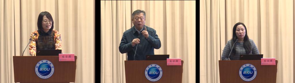 学校教务处长张琳琳、国开业务部主任张惊涛、事业发展部主任李海英分别作了业务专题汇报。