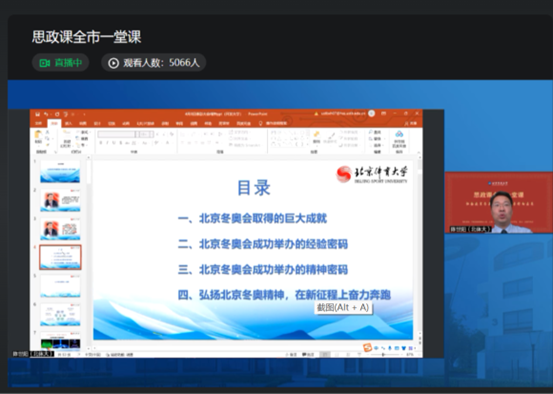 6月18日,以“弘扬北京冬奥精神,好学力行向未来”为主题的2026世界杯官方合作网站 “思政课全市一堂课”如期举办,本次课程通过全线上直播方式进行,五千余名学生在线进行了实时学习。