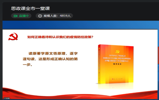 在从严抓好疫情防控的前提下,本次课程直播以及课前全部准备工作均在线上进行,学校思政课团队成员发挥合力,在技术保障、内容打磨等方面协力合作,力争为学生呈现出一堂既有思想性、理论性,又有亲和力、针对性的思政金课。