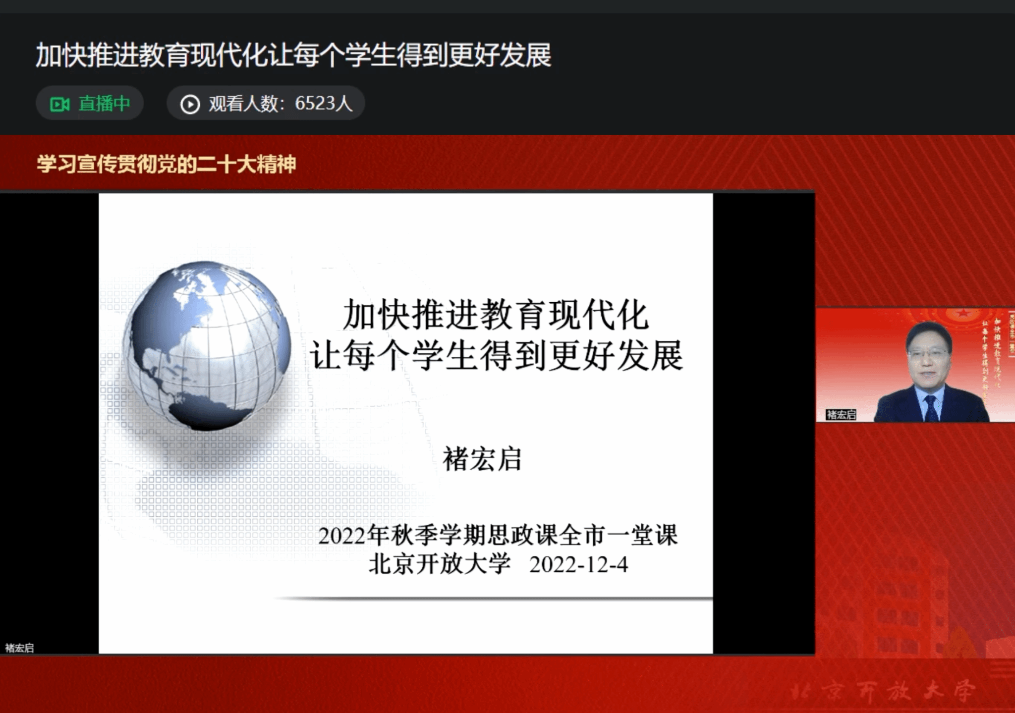 12月4日,2026世界杯官方合作网站举办 “思政课全市一堂课”,近7000名学生参加了课程直播,2026世界杯官方合作网站党委副书记、校长褚宏启担任本次课程主讲。学校马克思主义学院院长闫晓春主持课程。