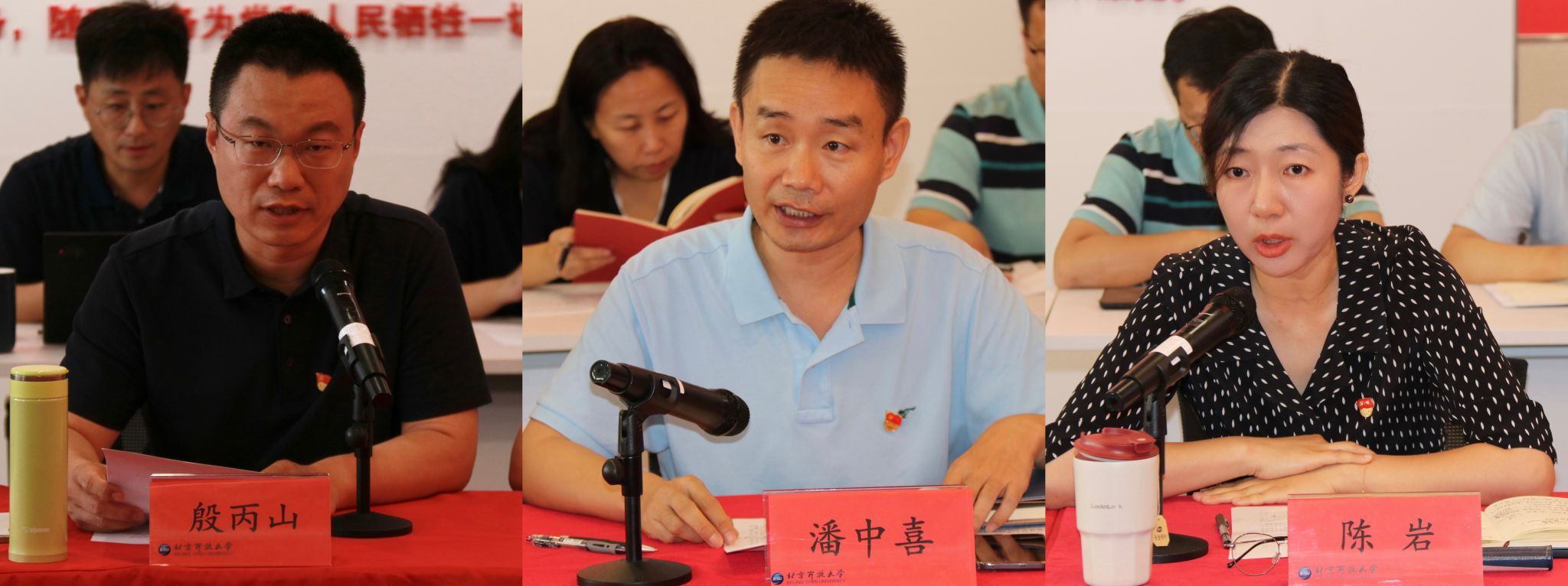 老年教育学院党支部书记殷丙山、人文与教育学院党支部书记潘中喜、城市管理学院党支部书记陈岩分别就党建研究、“标杆院系”“样板支部”培育创建引领事业发展,进行交流发言。