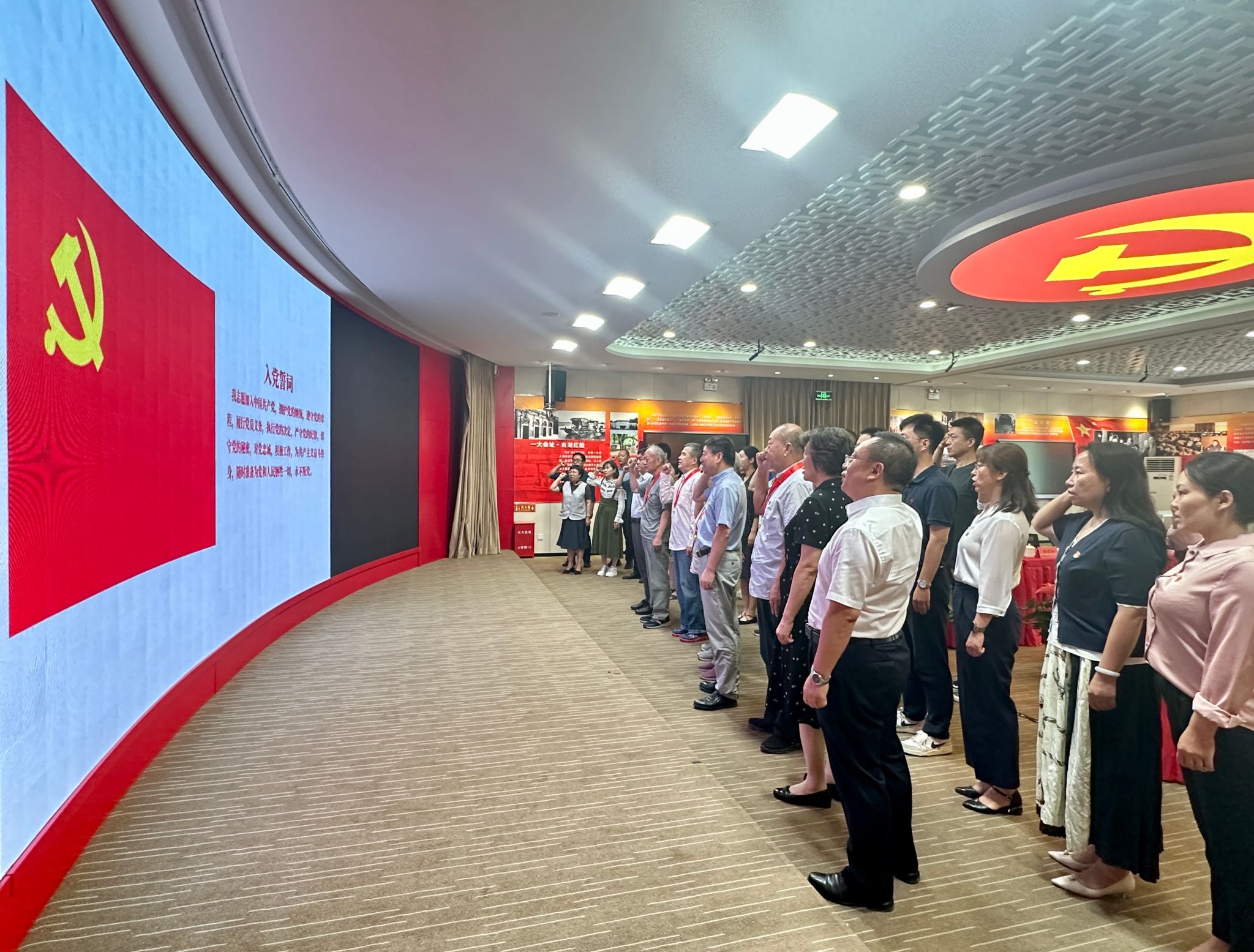 在“光荣在党50年”老党员代表张文大的领誓下,全体与会同志共同重温了入党誓词。庆祝大会在雄壮的《国际歌》声中圆满结束。