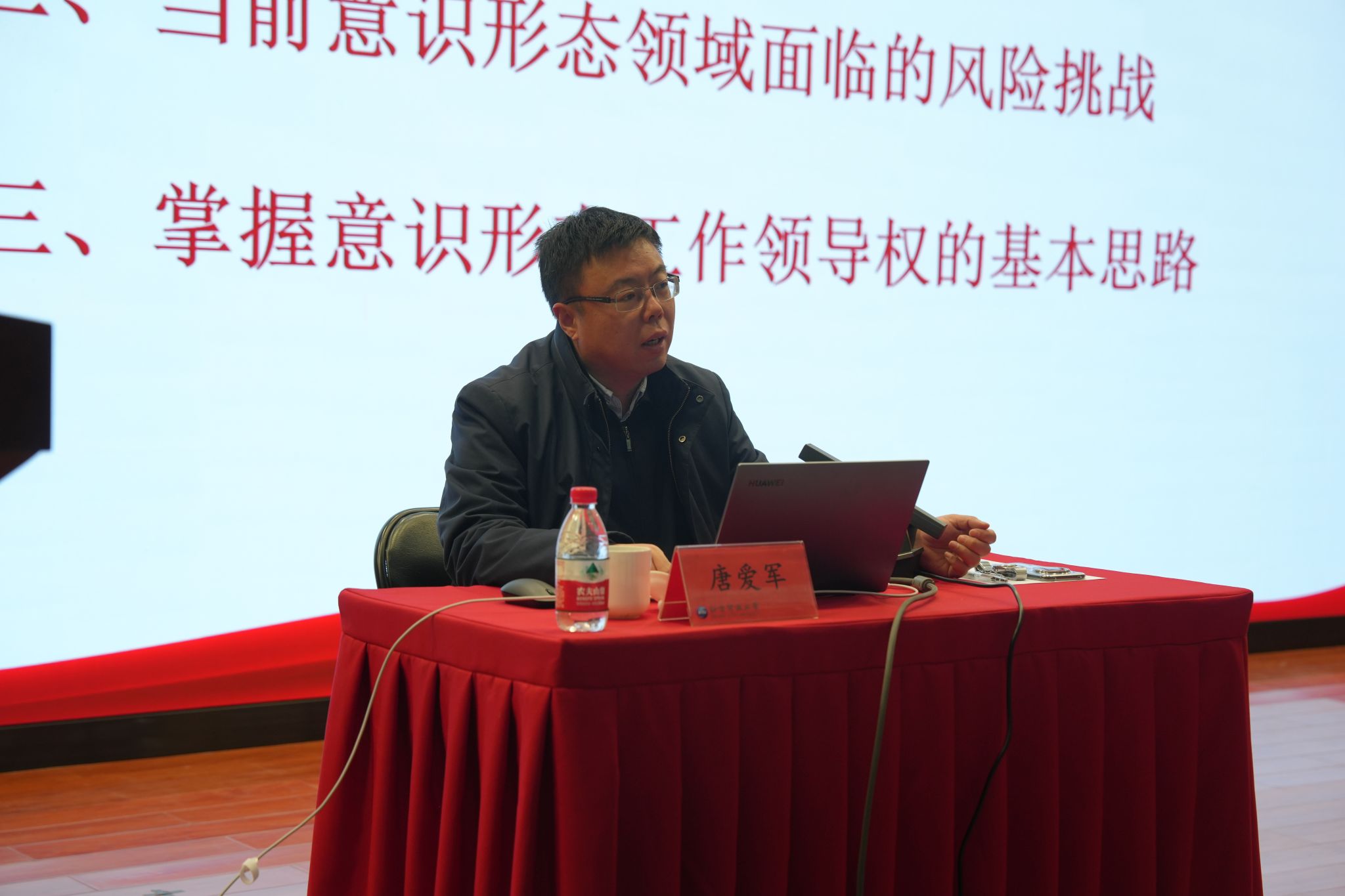 唐爱军围绕“牢牢掌握意识形态工作领导权”这一主题,从意识形态工作的极端重要性、当前意识形态领域面临的风险挑战、掌握意识形态工作领导权的基本思路等方面,详细解读和阐释了意识形态工作的重要意义、为什么要牢牢掌握党对意识形态工作领导权,以及具体工作落实的路径和方法。内容深入浅出、立意高远、案例翔实,为全校教职工深刻领会习近平总书记关于意识形态工作的重要论述提供了有力指导,对提升意识形态工作能力水平具有重要的实践价值。