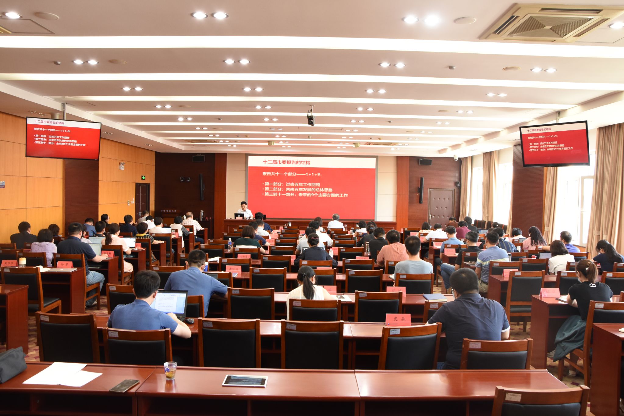 7月13日下午,学校党委理论学习中心组召开学习扩大会,专题学习市第十三次党代会精神。市第十三次党代会代表、学校党委副书记、校长褚宏启进行宣讲报告,党委理论学习中心组成员,全体中层干部,教授委员会主任、副主任,部门助理参加会议。