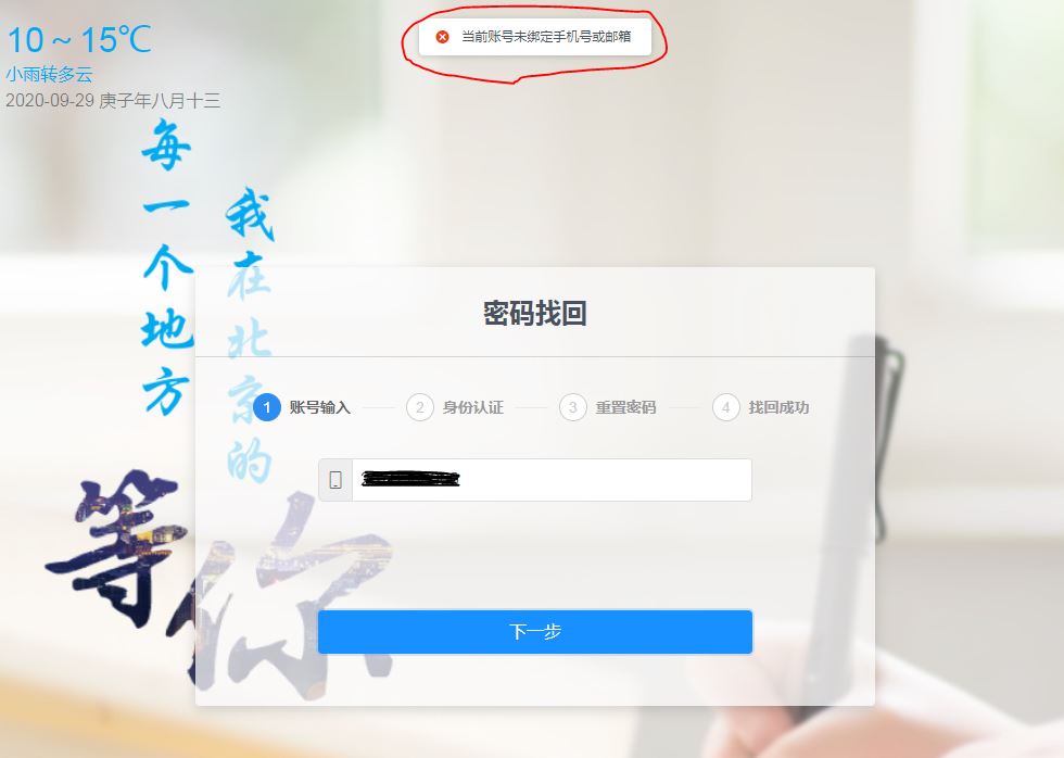 三 找回密码时提示“当前账号未绑定手机号或邮箱”