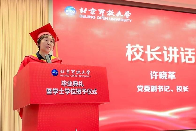 党委副书记、校长许晓革代表学校向毕业生表示祝贺,并给予深情寄语和美好祝福。许晓革表示,每一位开大学子都是勤奋且优秀的学生,既是求学道路上的收获者,也是自己人生道路上的追梦人。她对毕业生提出三点期望:一是坚定理想信念,做一个有社会责任感的人;二是坚持启智增慧,做一个热爱终身学习的人;三是坚持乐观豁达,做一个新时代的奋斗者。希望开大学子能以更加饱满的姿态奔赴热爱,以更加坚定的信念迎接挑战。