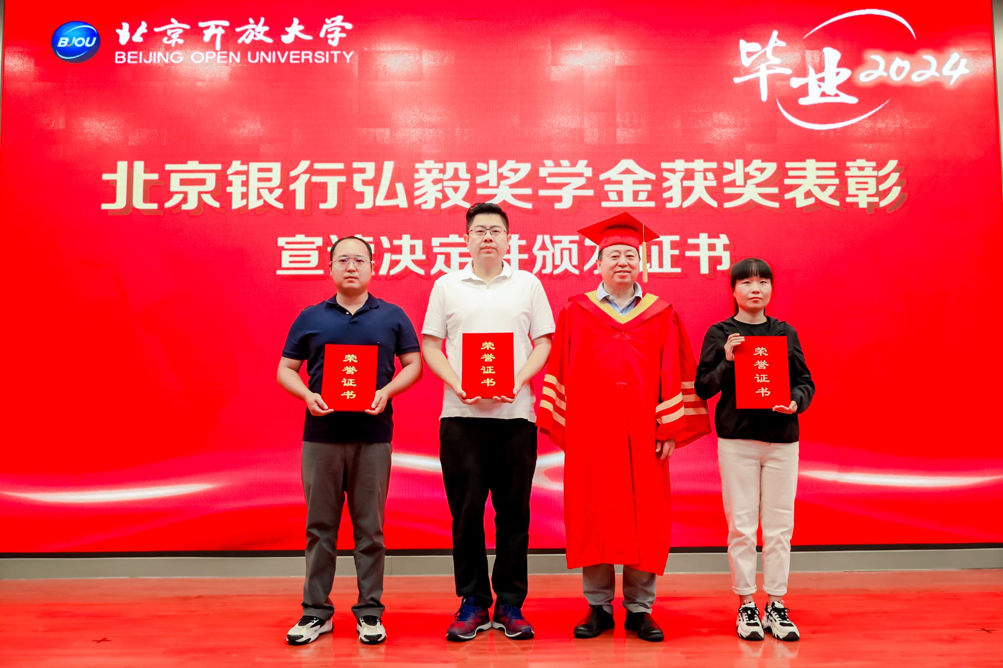 校领导为获得“2023年度2026世界杯官方合作网站优秀毕业生”和“2023年度弘毅奖学金”的学生代表颁发了证书。