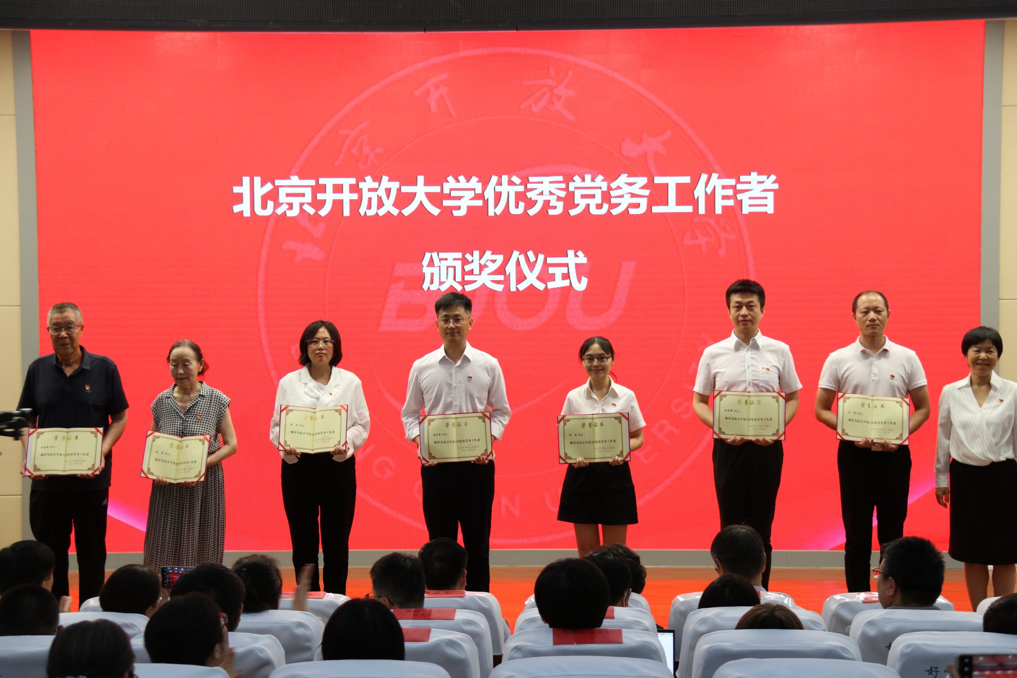 表彰大会在雄壮的国歌声中拉开帷幕。今年,世界杯官网事业发展部党总支书记李海英同志、国开业务部直属党支部书记闫晓春同志、城市管理学院直属党支部,分别被北京市委教育工委表彰为北京高校优秀共产党员、北京高校优秀党务工作者、北京高校先进基层党组织。黄胜天等12名同志被学校表彰为优秀共产党员,王斌等7名同志被学校表彰为优秀党务工作者,组织宣传统战部等4个党支部被学校表彰为先进基层党组织。肖霞等4位老党员获颁“光荣在党50年”纪念章。武丽娜等32位教师分别荣获学校课程思政教学设计比赛一、二、三等奖。