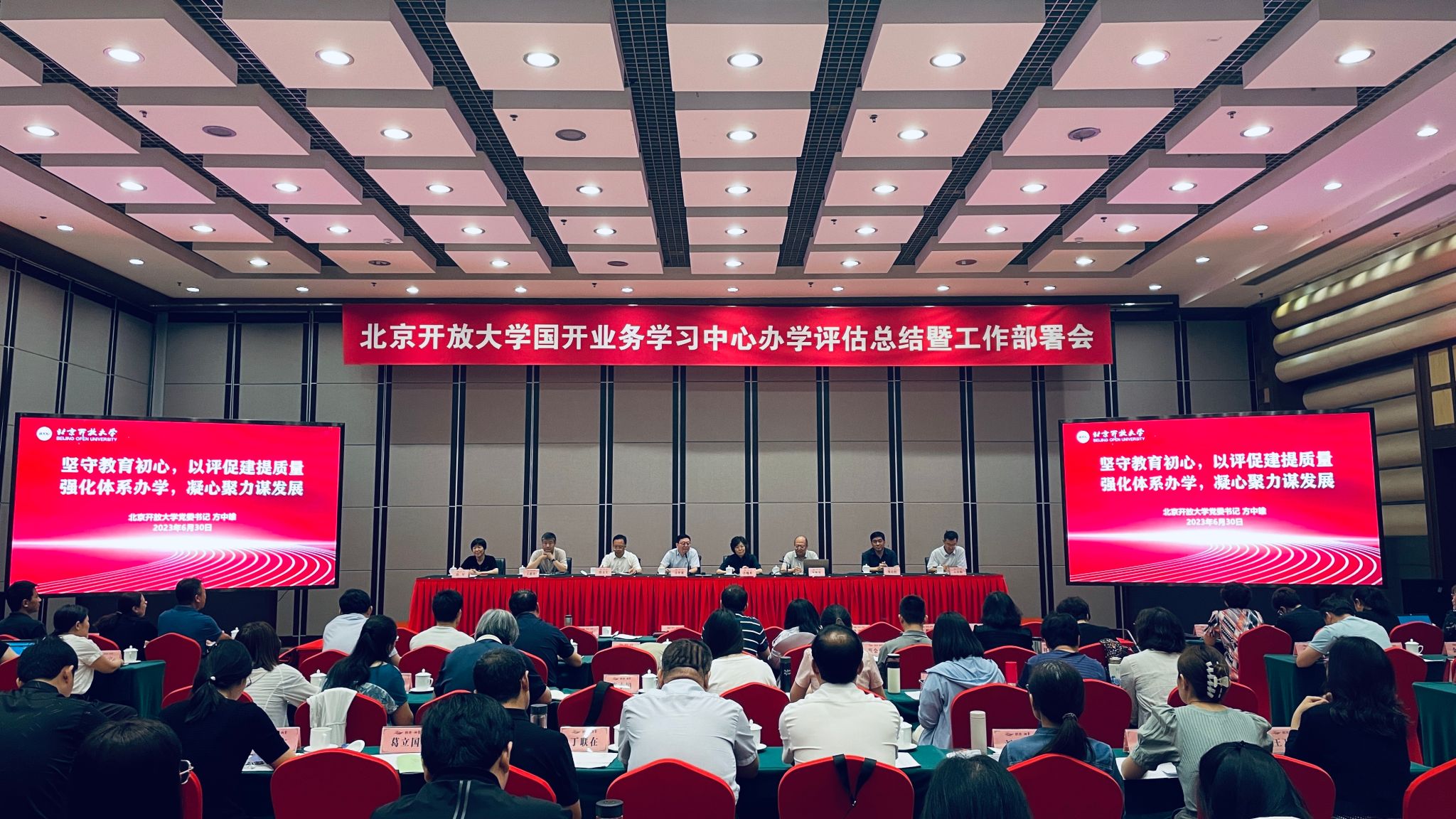 6月29日-30日,世界杯官网召开了国开业务学习中心办学评估总结暨工作部署会。学校全体领导班子出席会议。党委书记方中雄、党委副书记、校长许晓革分别做讲话。会议由副校长李继延主持。35家分校、学习... -