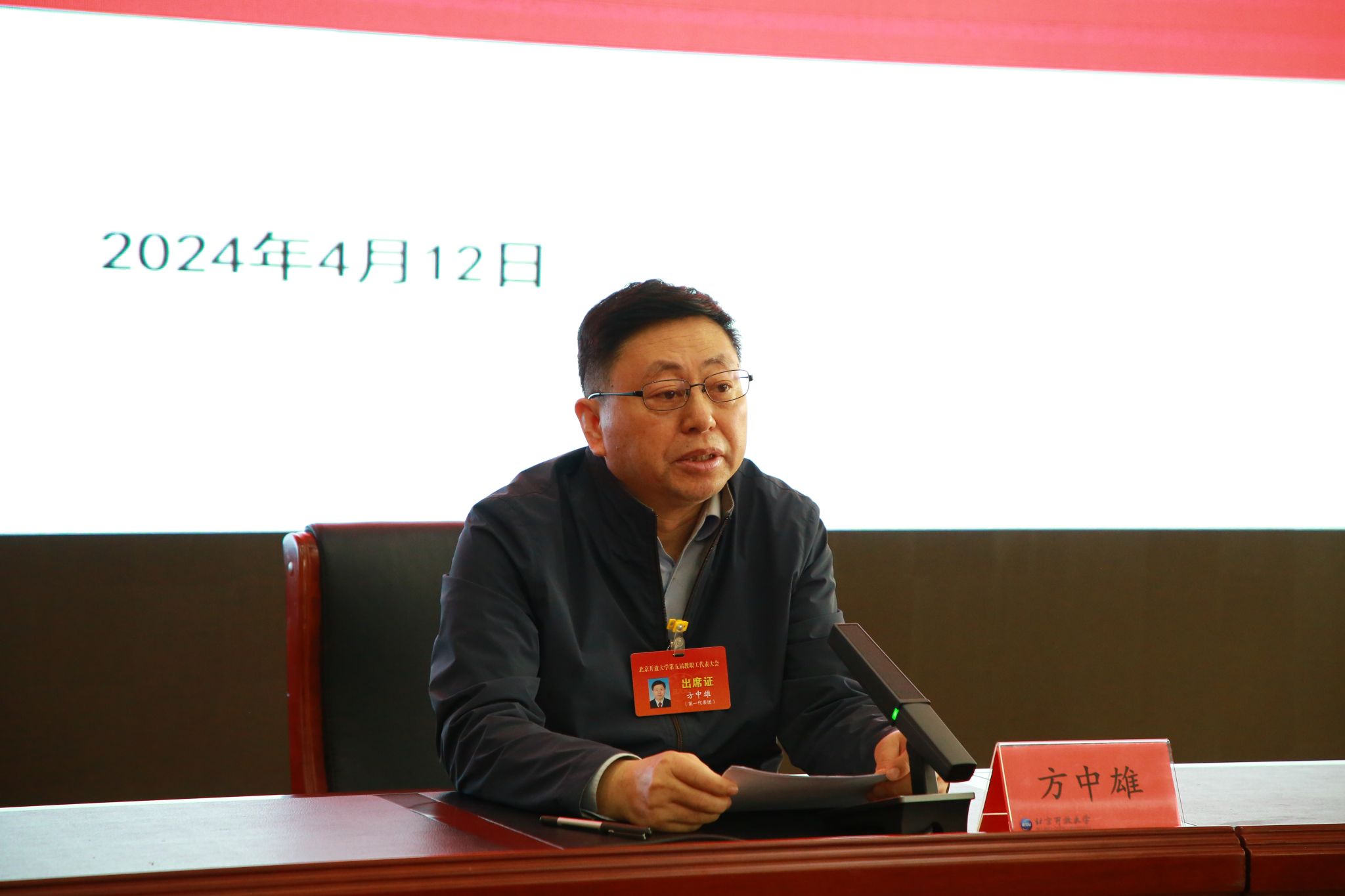 方中雄强调,2024年是全面推动教育强国建设的开局之年,也是落实学校党员大会战略部署的开局之年,广大教职工要上下齐心共同努力配合,“高标准、快节奏”顺利完成好学校这次岗位聘任工作。希望通过教代会,宣传、发动和组织全体教职工,进一步明确学校的定位和发展目标,凝心聚力、团结奋进,同舟共济、开拓进取,为建设一流的开放大学而努力工作。