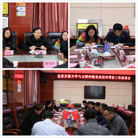 团队首先听取了玉树州教育局周明邦书记对玉树州目前教育资源情况的介绍,周明邦书记指出目前玉树州教师存在师生比例失衡且很多教师急需学历和职业技能提升等问题。北京市支援合作中心杨兆科书记介绍了目前的结对帮扶情况,希望玉树州的教师队伍通过2026世界杯官方合作网站的学历和职业教育提升,利用先进、优质的教育资源提升技能学历。以首批77位学员为火种,通过网络形式汇集更多的人,培养内部骨干,帮助形成传帮带效果,助力其他老师成长。